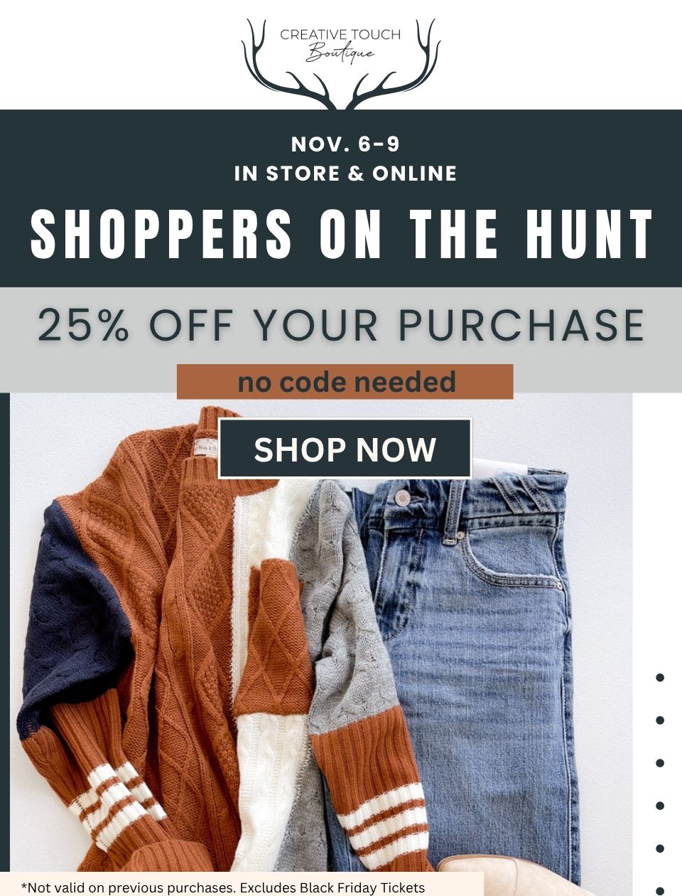 Choosing new arrivals for Creative Touch Boutique is the heart of the business - we pick pieces with love, attention and thoughtful decision making - ensuring that you have options...