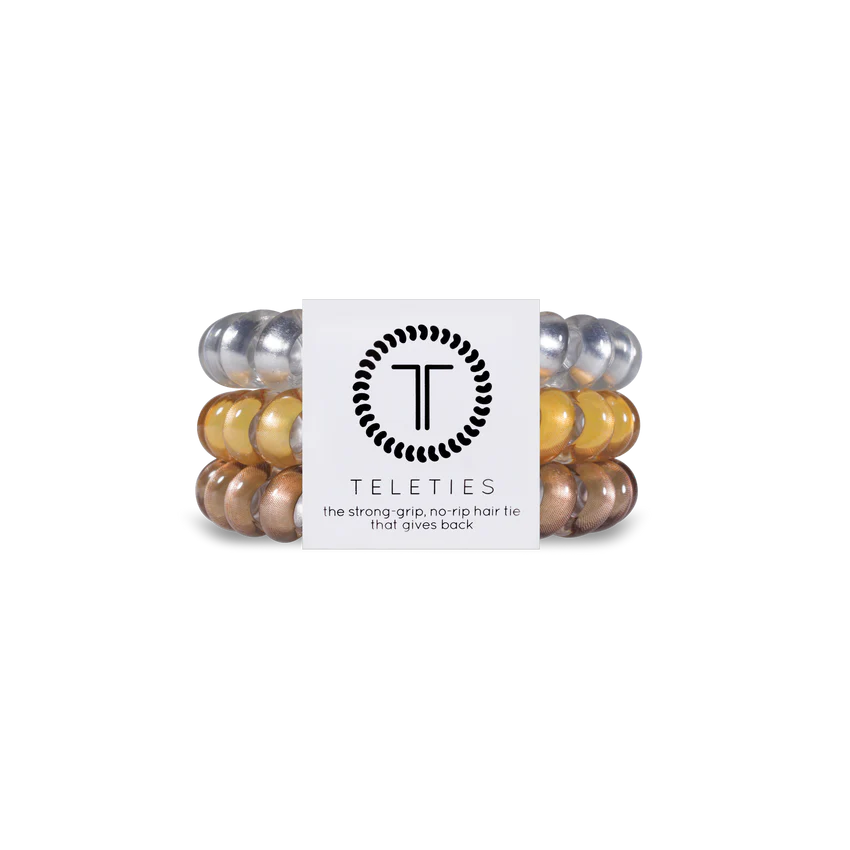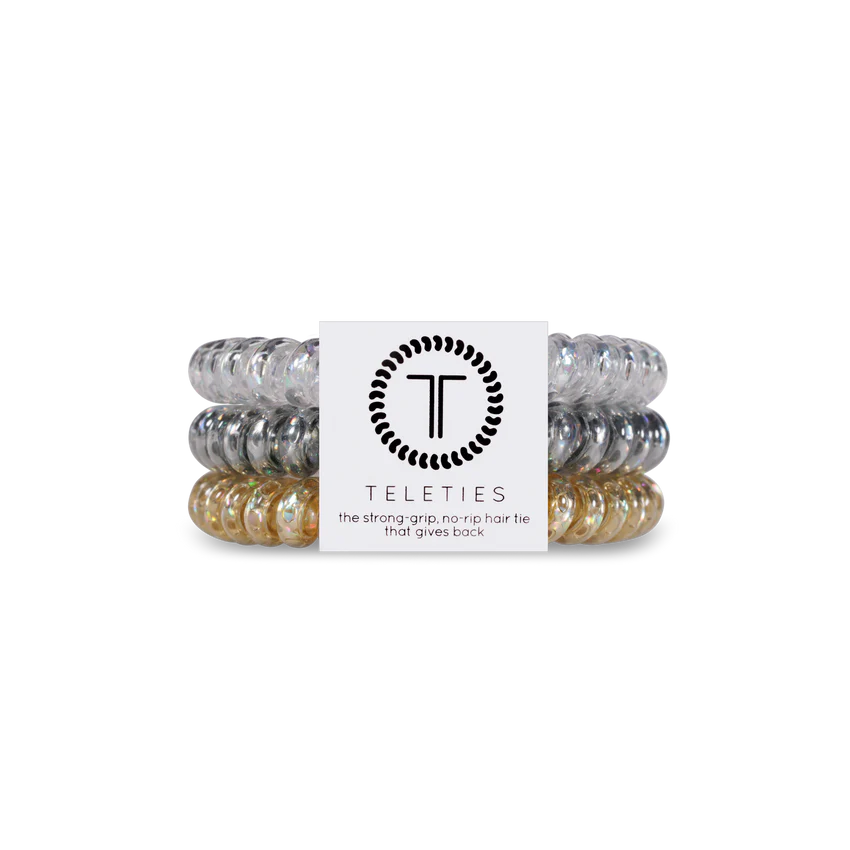 Hold your hair and enhance your style with TELETIES. The strong grip, no rip hair tie that doubles as a bracelet. Strong, pretty and stylish, TELETIES are designed to withstand everyday demands while taking your look to the next level.