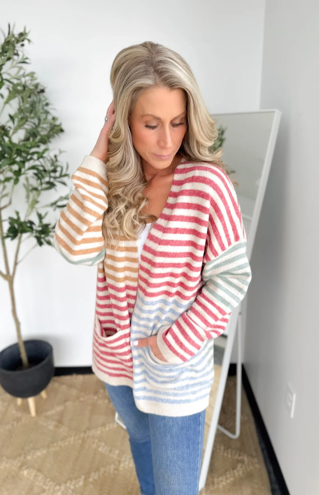 Multicolored Striped Open Cardigan