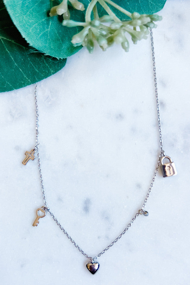 Heart and Cross Charm Necklace