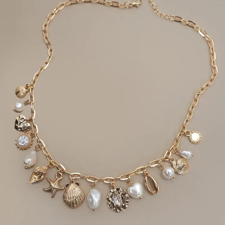 Charm Necklace-Seashells & Pearls