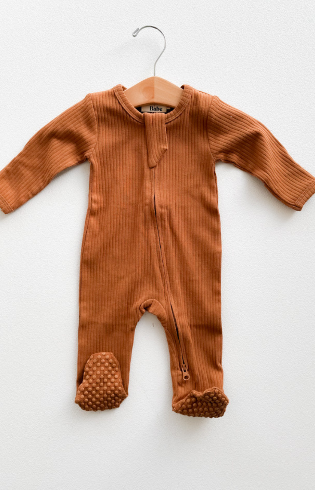 Organic Cotton Ribbed Footie - Rust