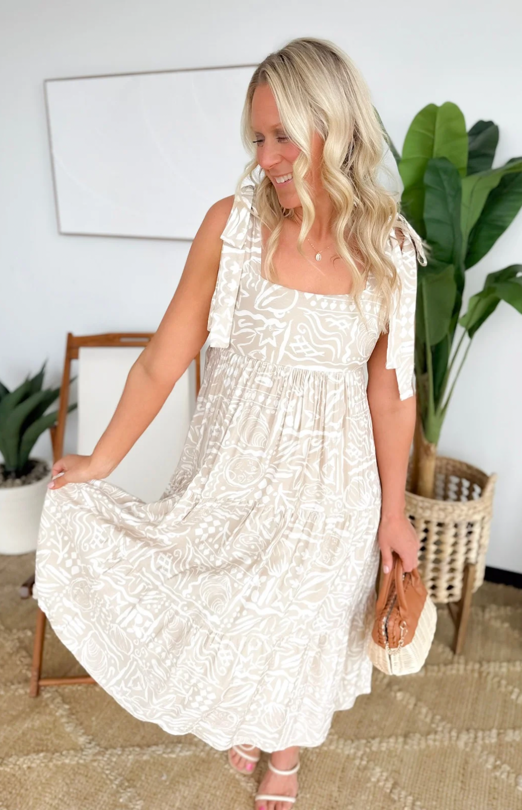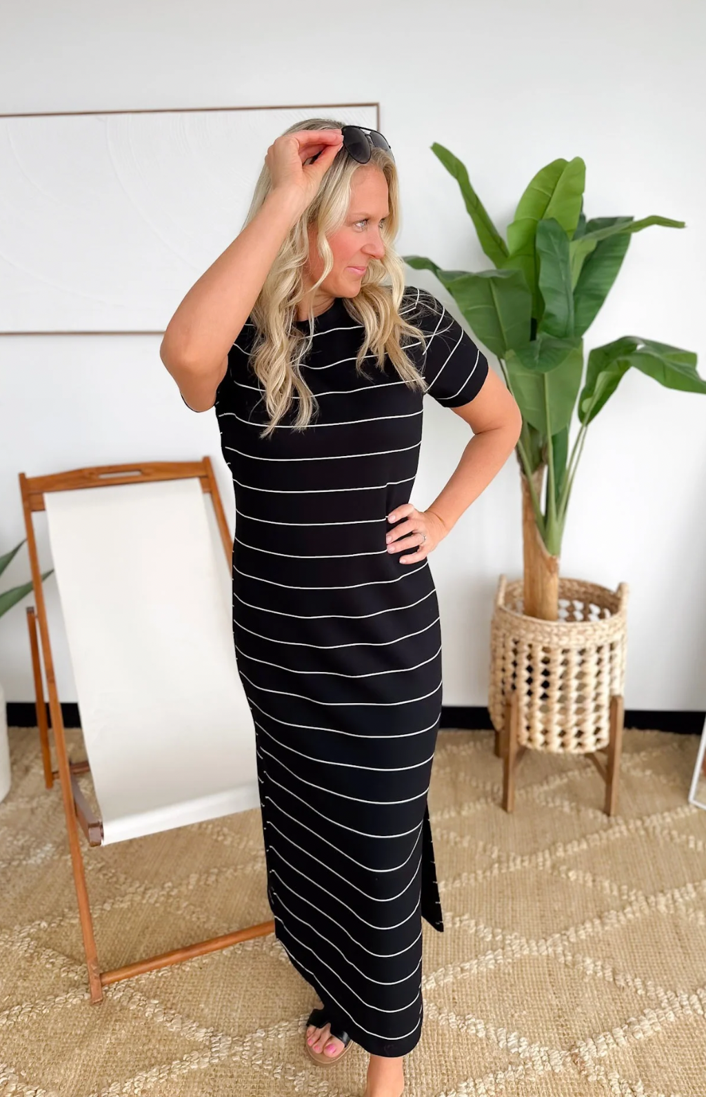 Oatmeal Linen Striped Halter Top Maxi Dress