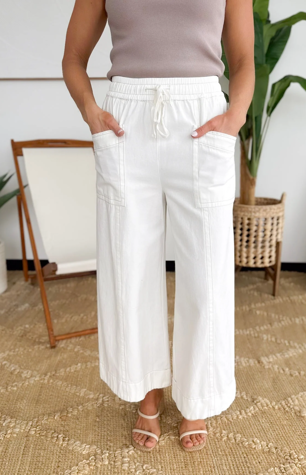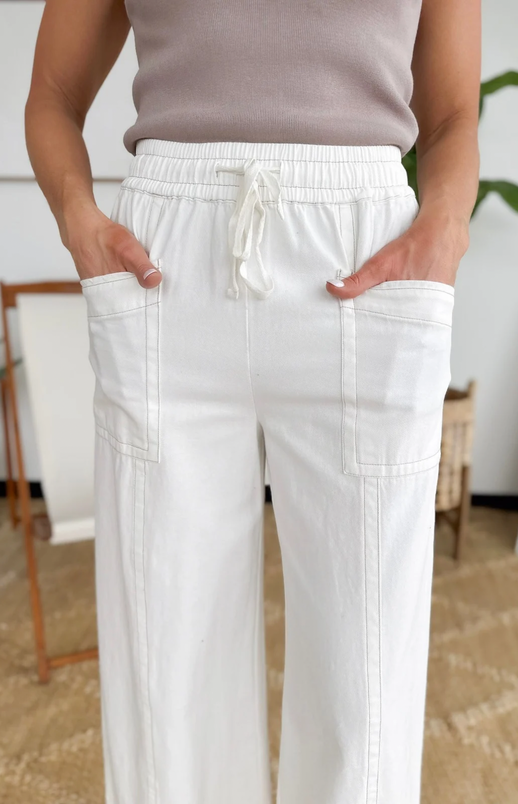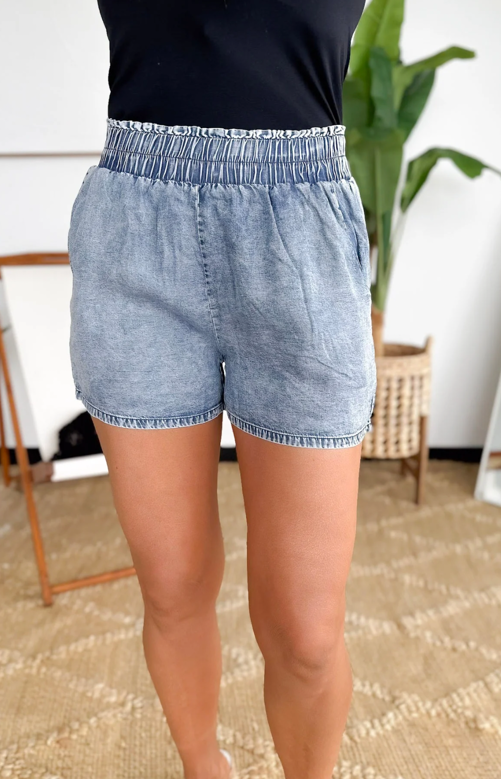 Medium Wash Ruffle Elastic Waistband Denim Shorts