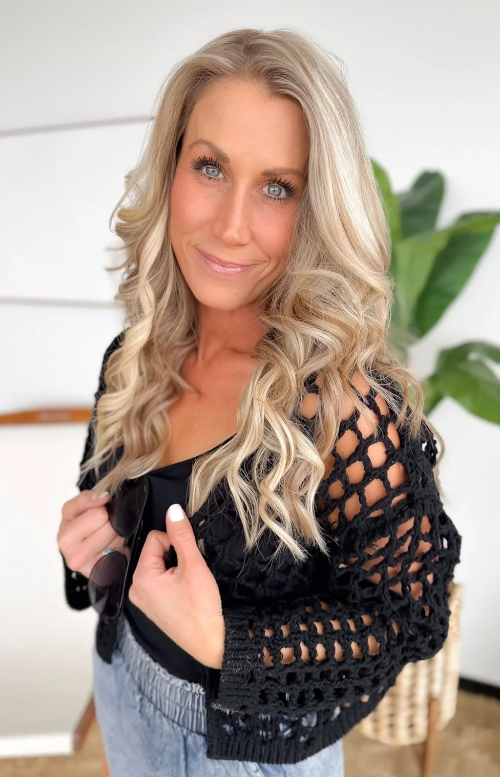 Short Sleeve Black Boxy Top with Leaf Pattern