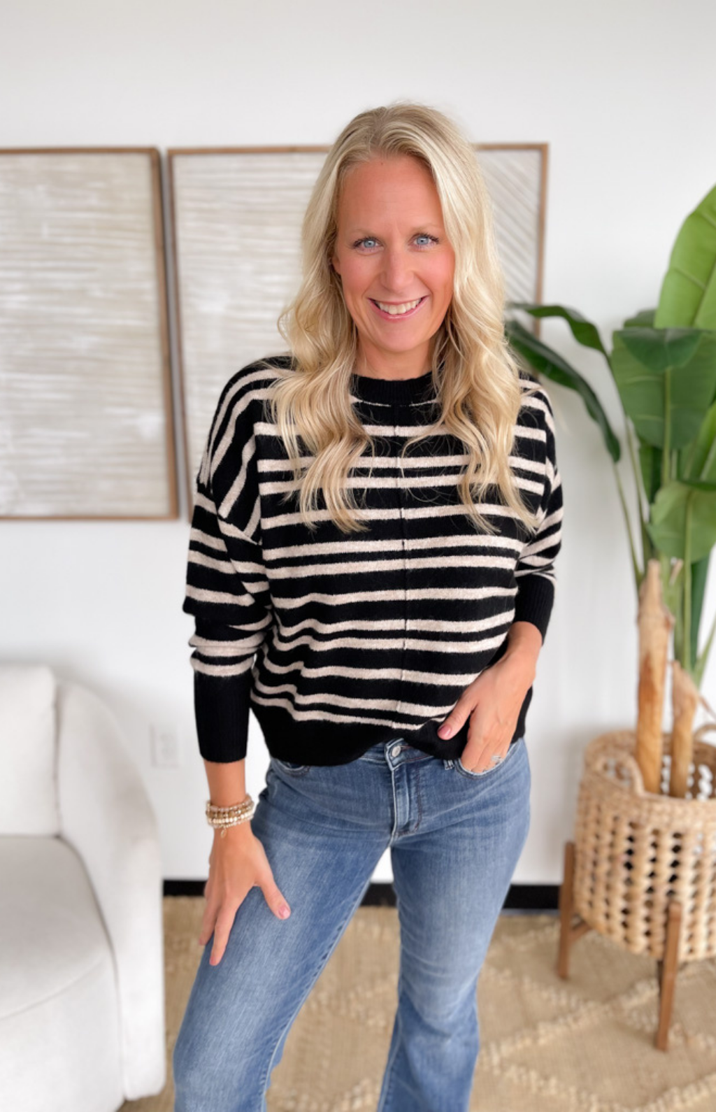 Classic Striped Knit Sweater with Contrast Trim (2 colors)