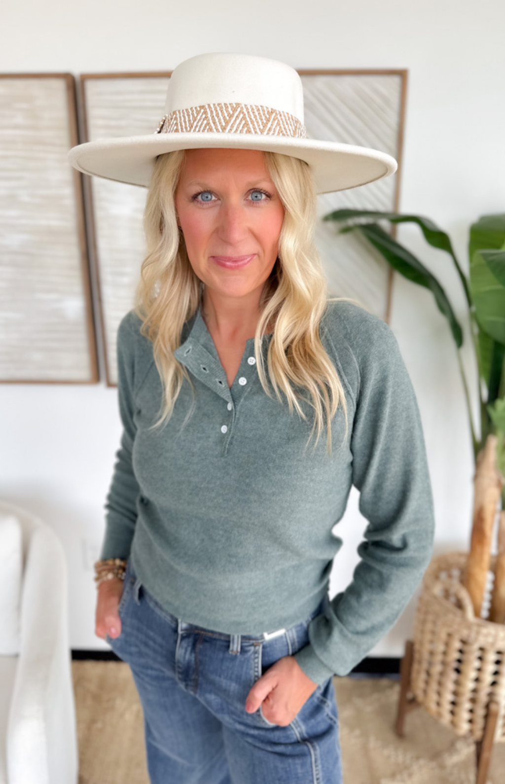 Oatmeal Crew Neck Raglan Long Sleeve Top