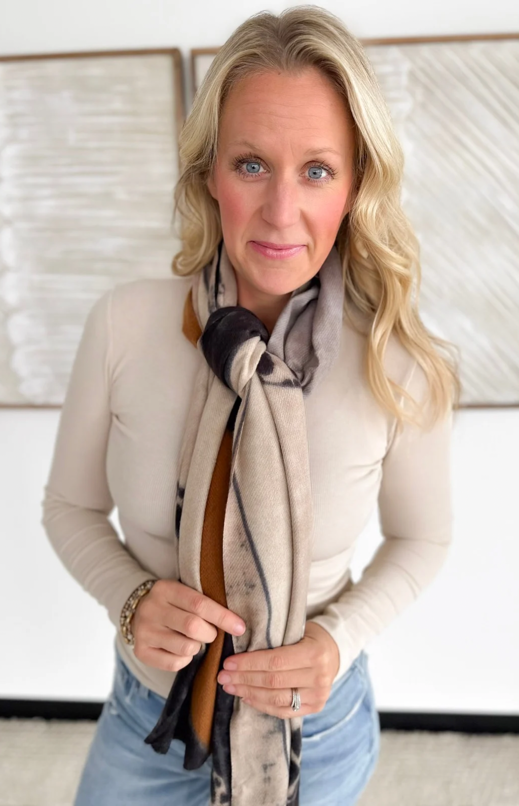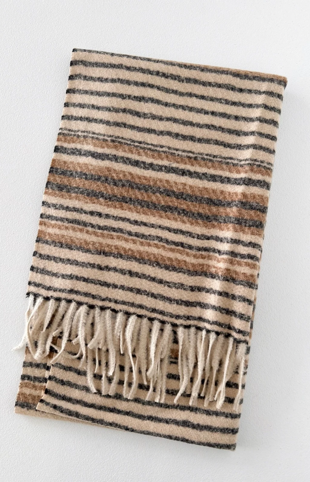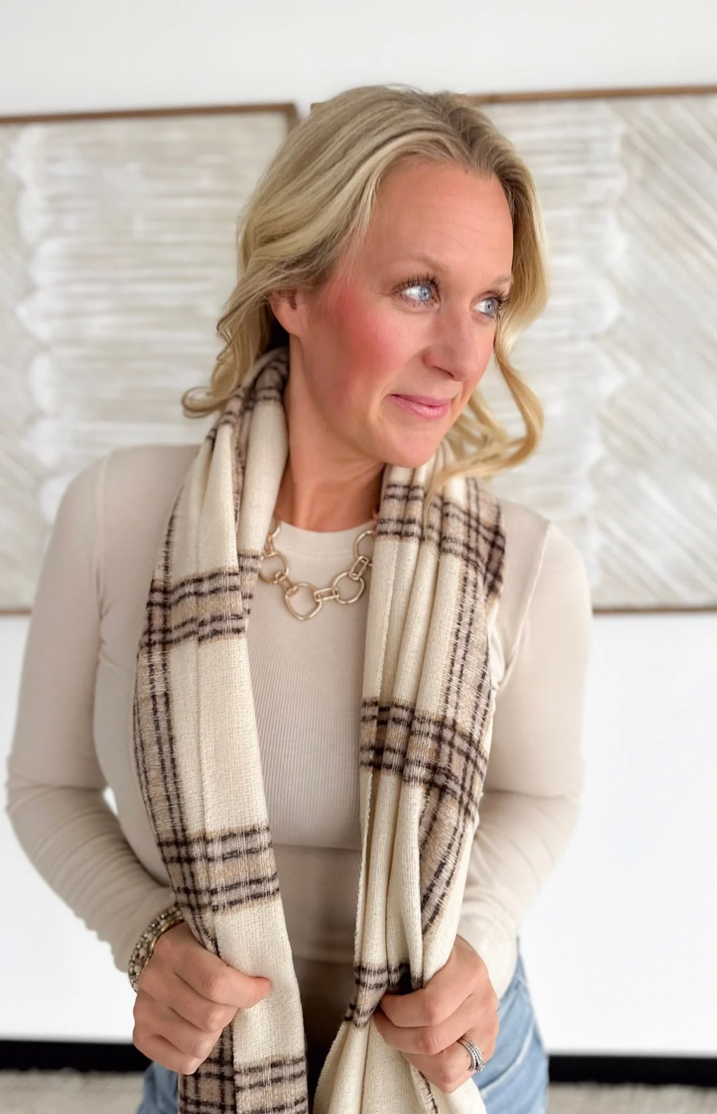 Cream/Black/Red Plaid Cashmere Scarf with Tassel