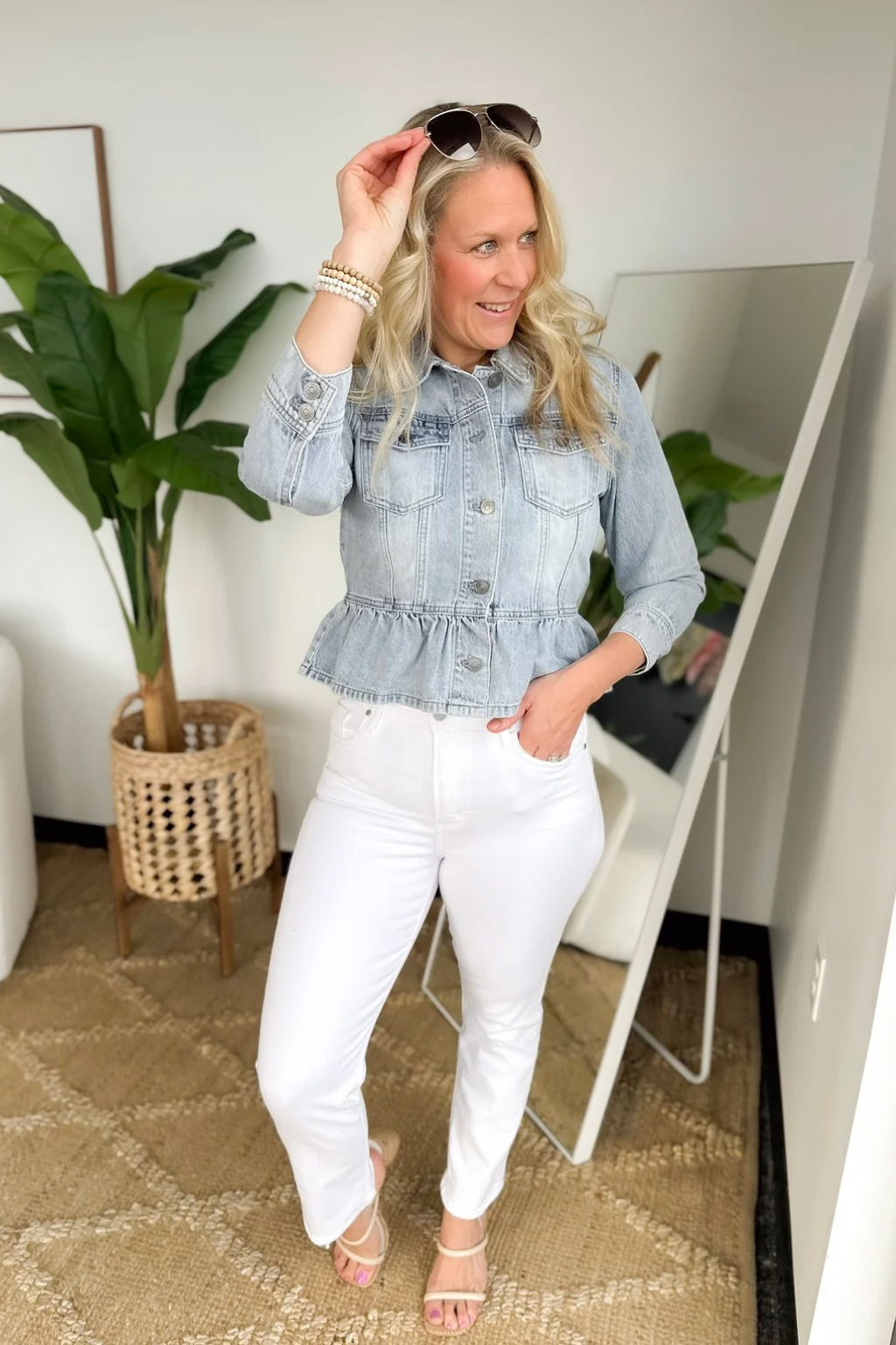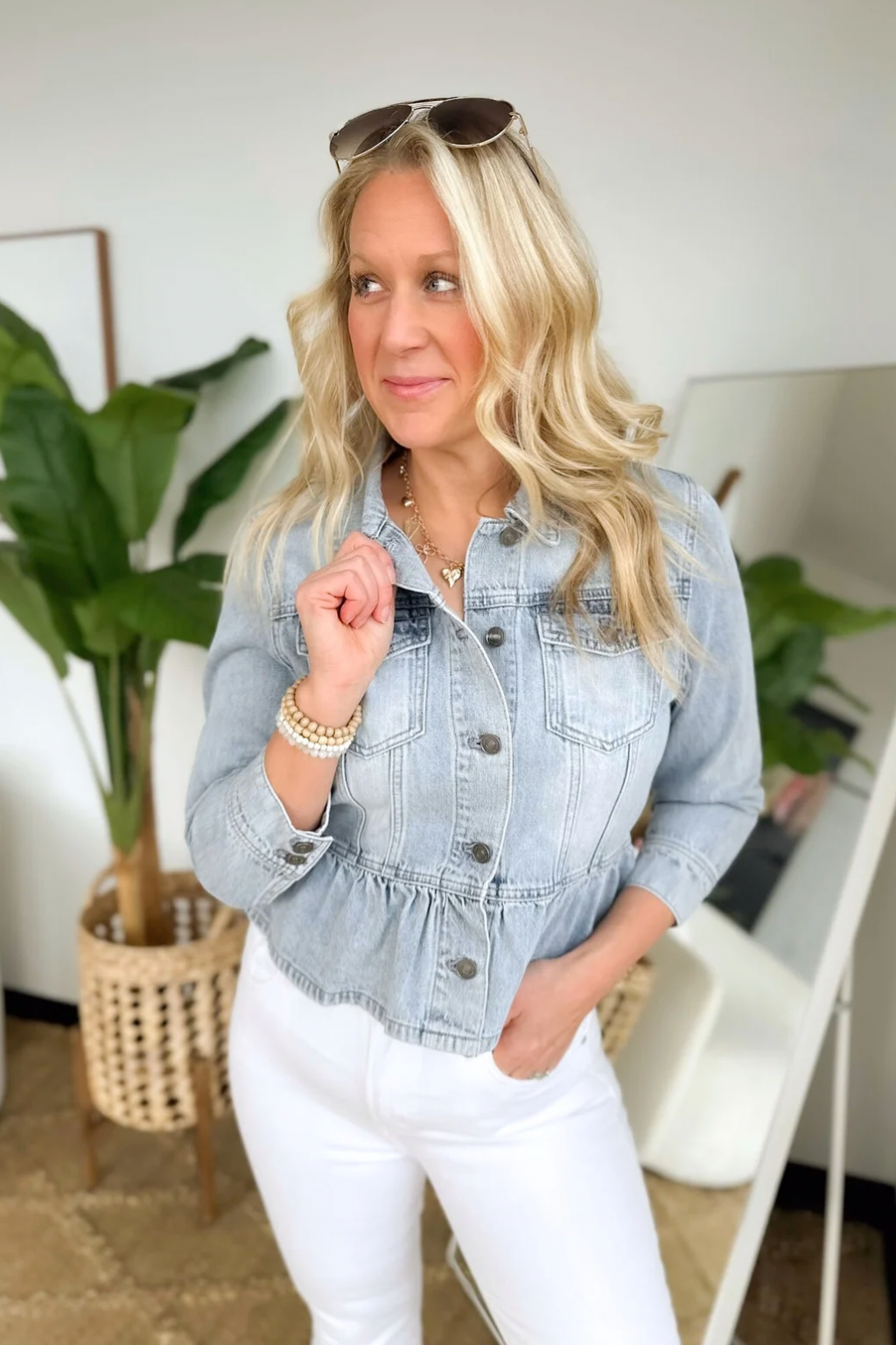 Light Wash Peplum Denim Jacket