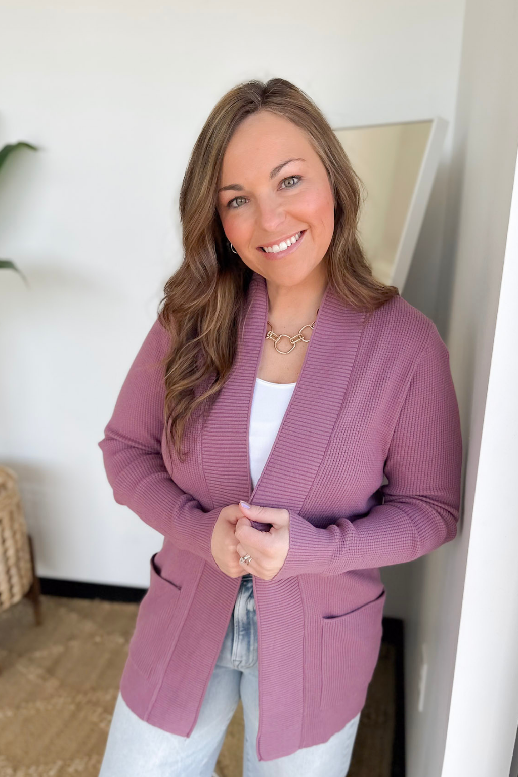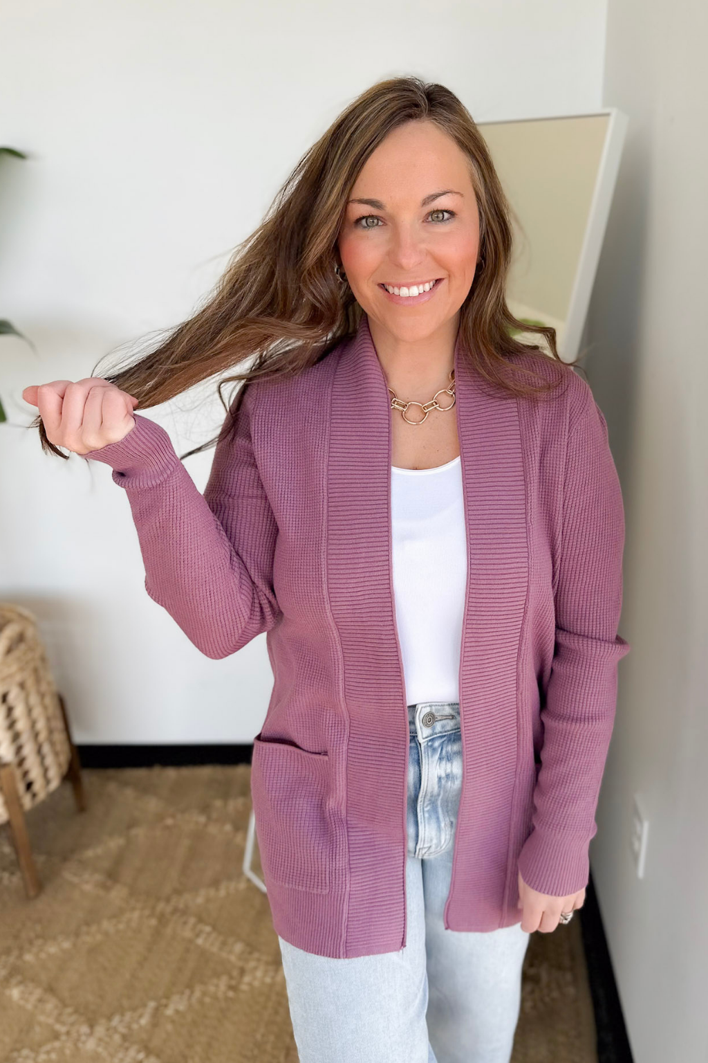 Dark Lavender Mini Waffle Cardigan