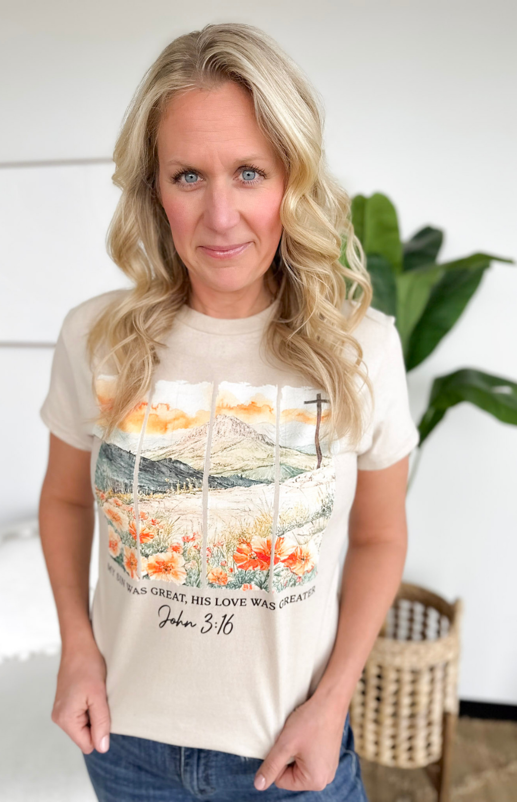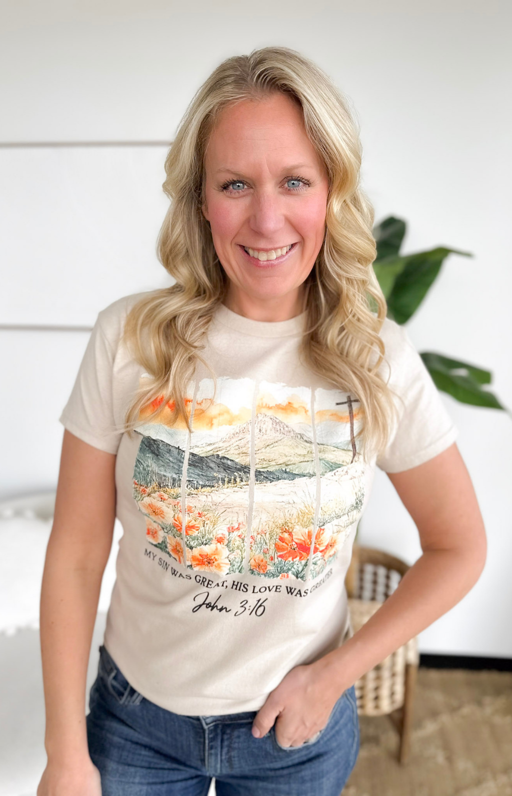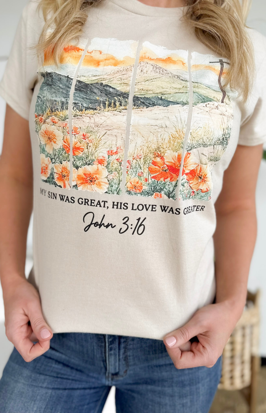 My Sin Was Great His Love Was Greater John 3:16 Graphic Tee