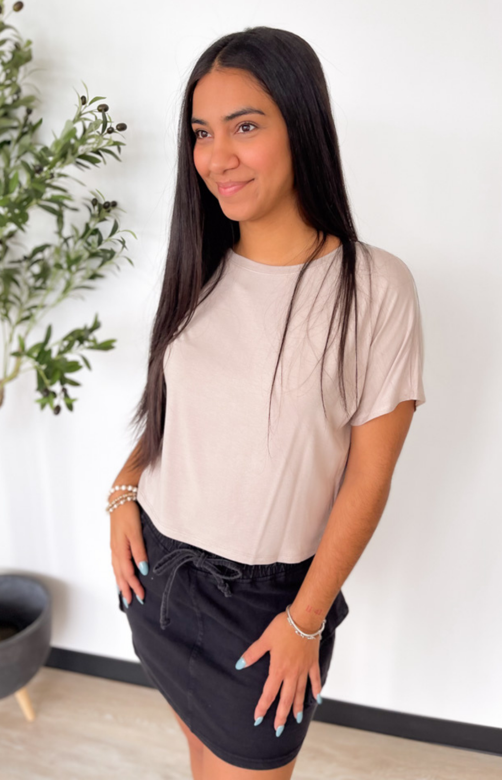 Fitted Round Neck Long Sleeve Top-Oatmeal