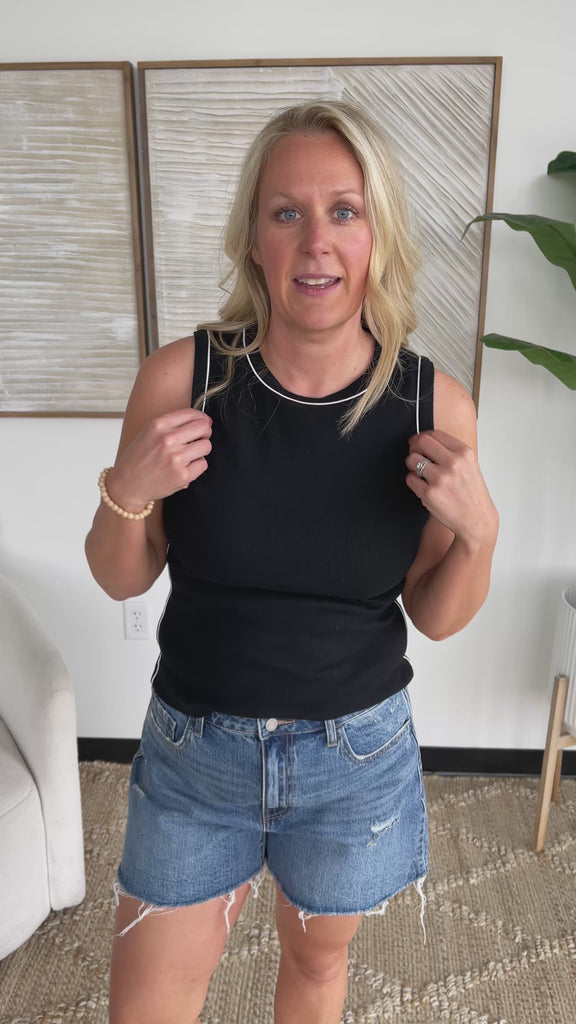 Black Long Sleeve Cable Knit 1/2 Button Top
