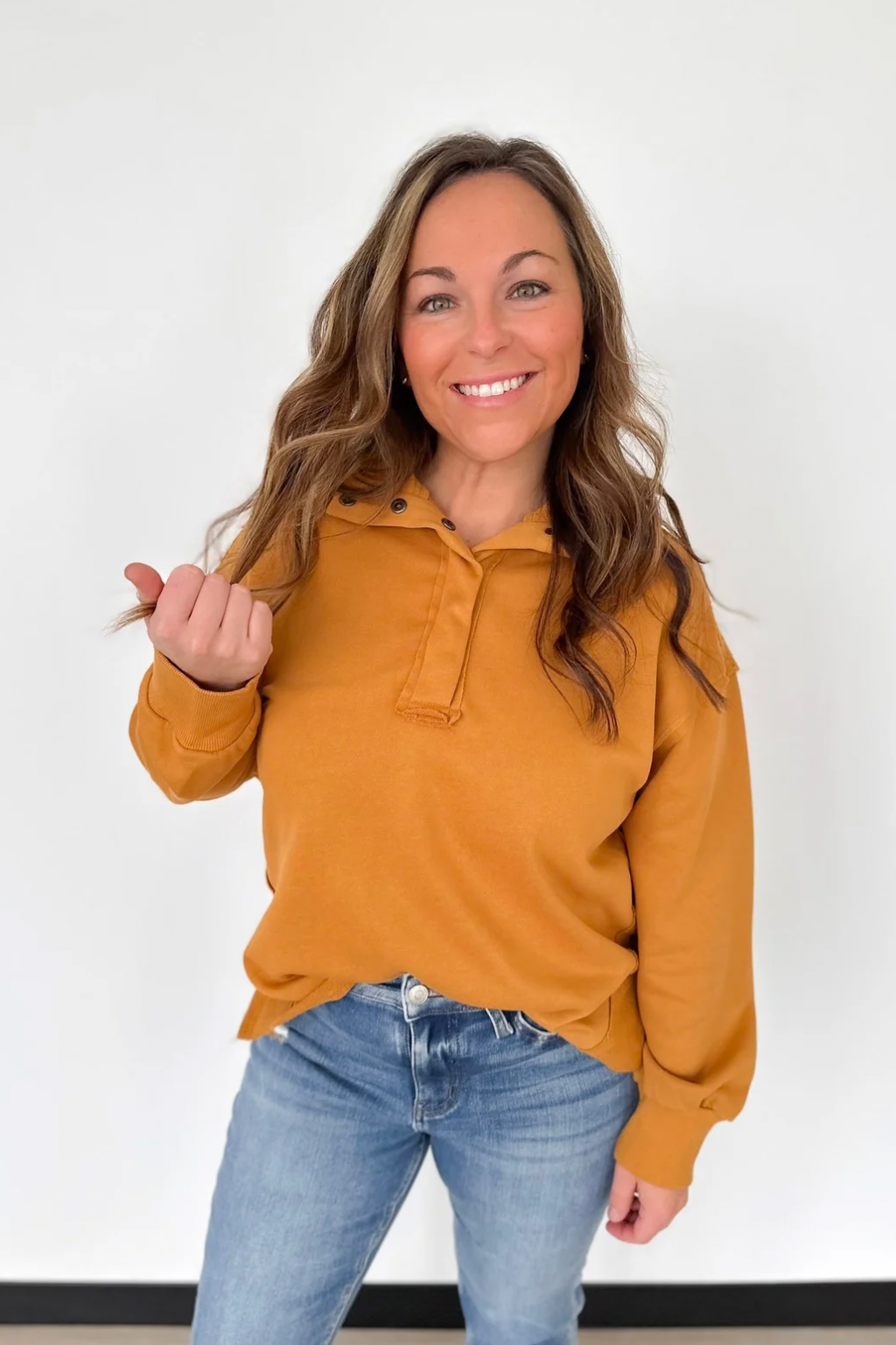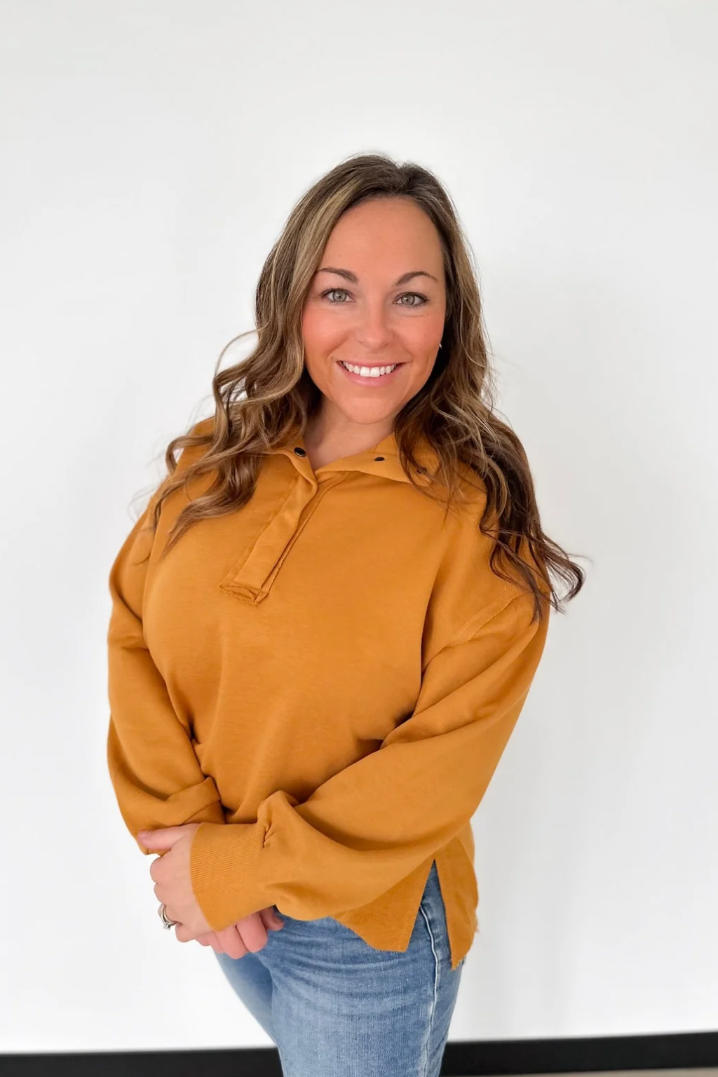Mustard Half Snap Button Pullover