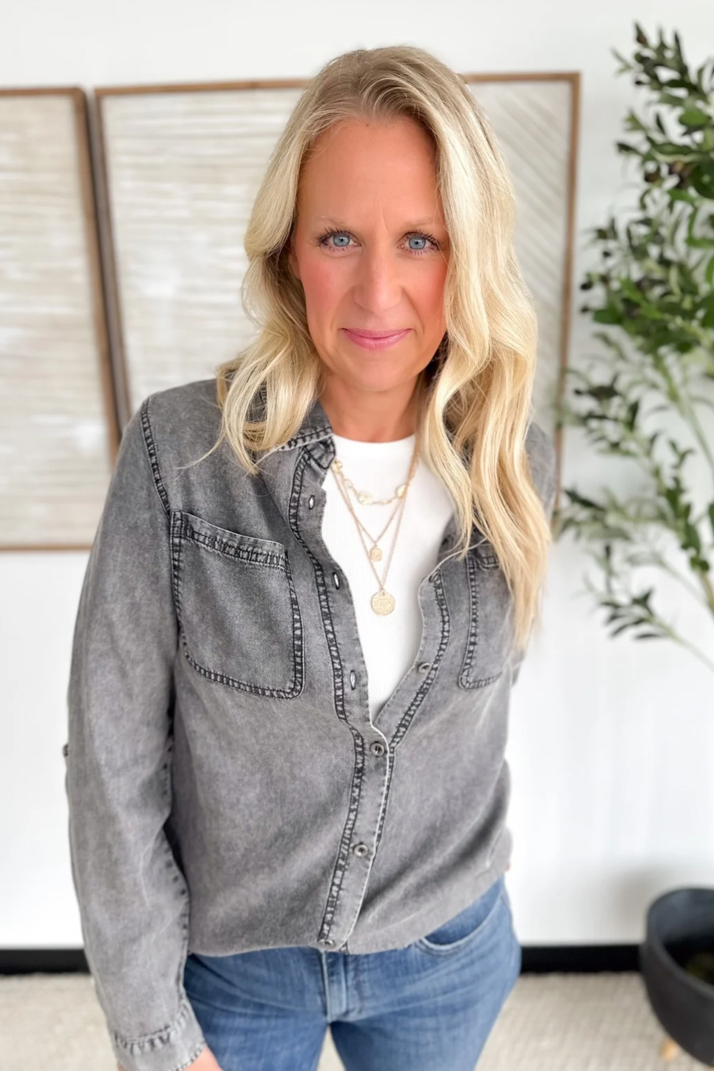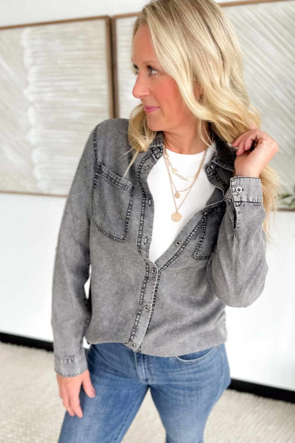 Black Denim Chambray Button Down Shirt