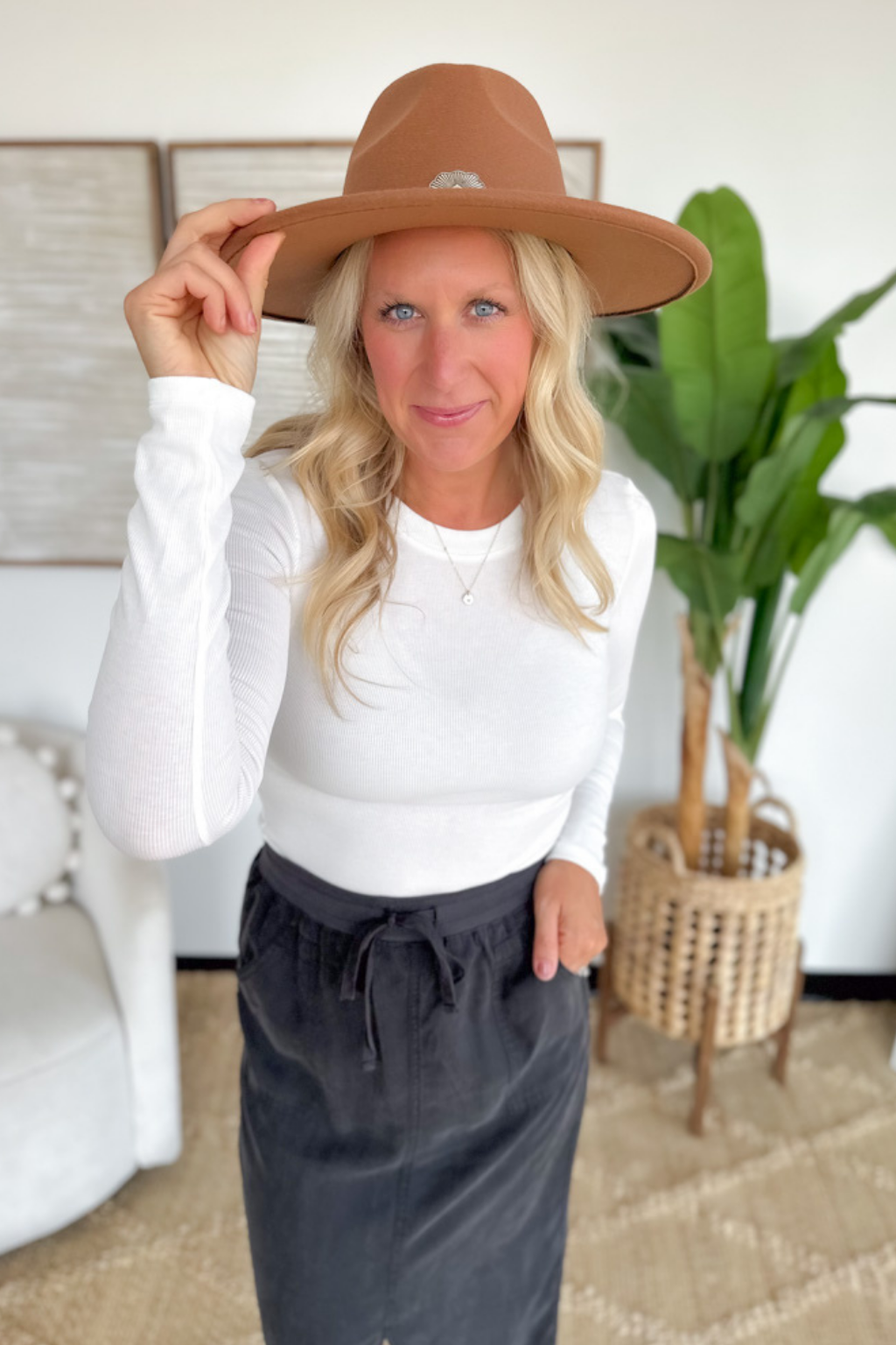 Fitted Round Neck Long Sleeve Top-Ivory
