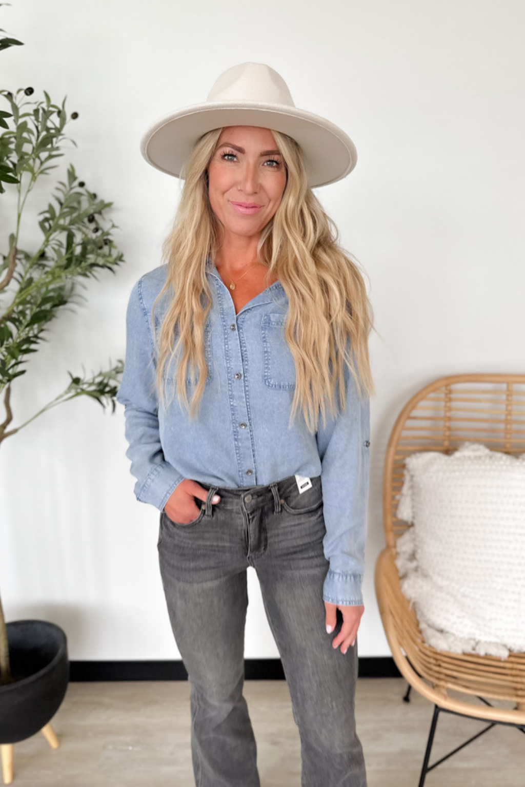 Light Denim Chambray Button Down Shirt