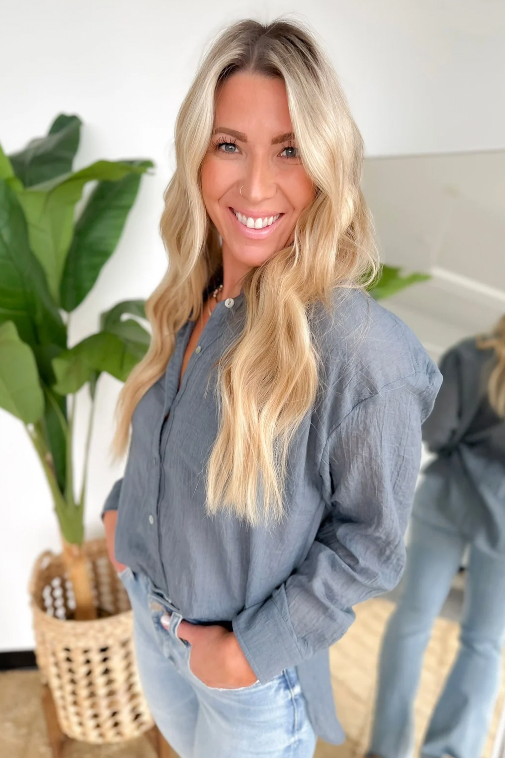 Denim Blue Oversized Button Up Lightweight Top