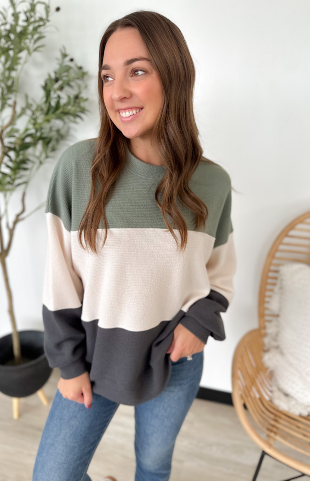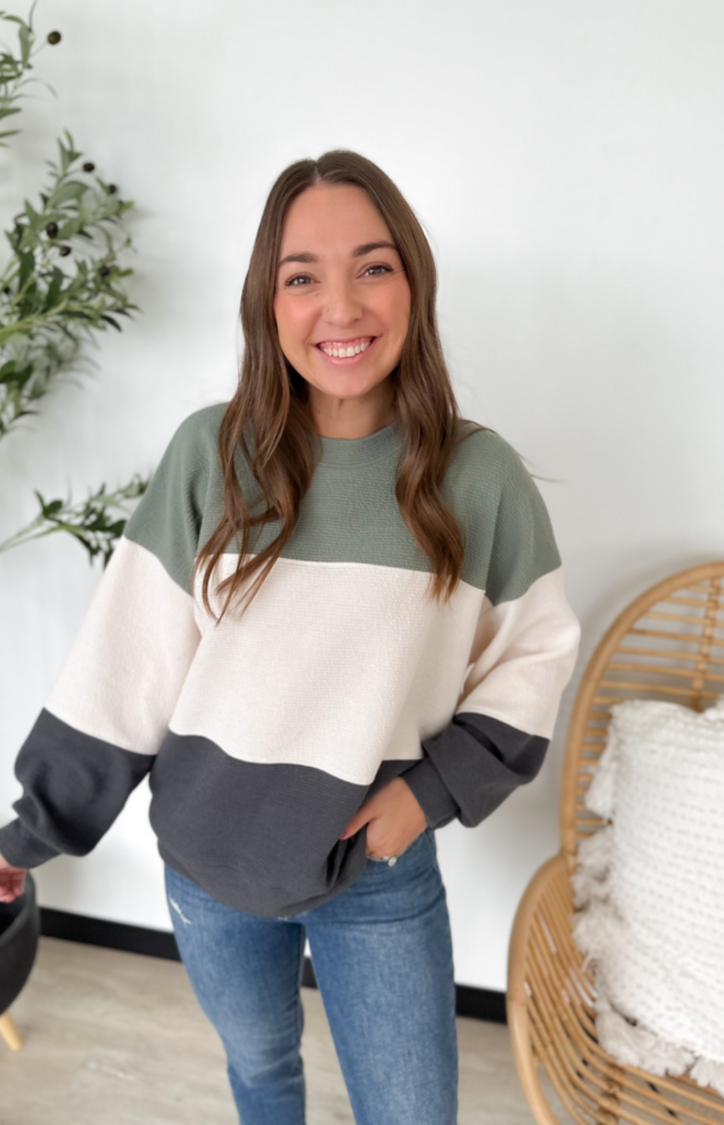 Mock Neck Relaxed Long Sleeve Pullover-Green