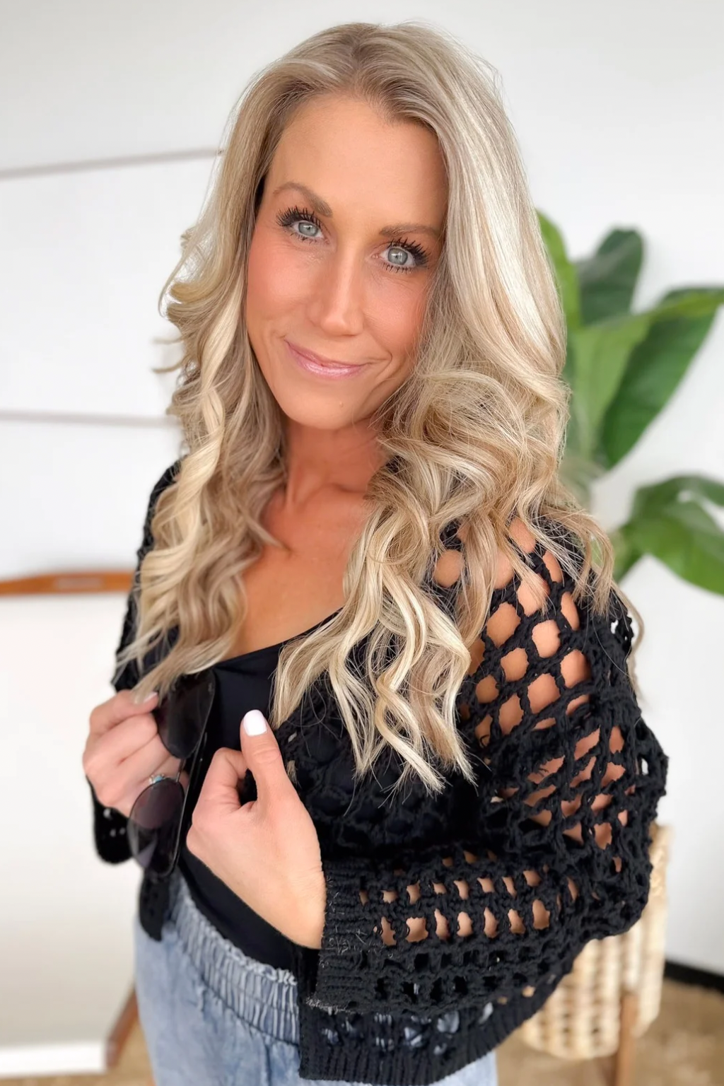 Black Crochet Open Knit Crop Cardigan