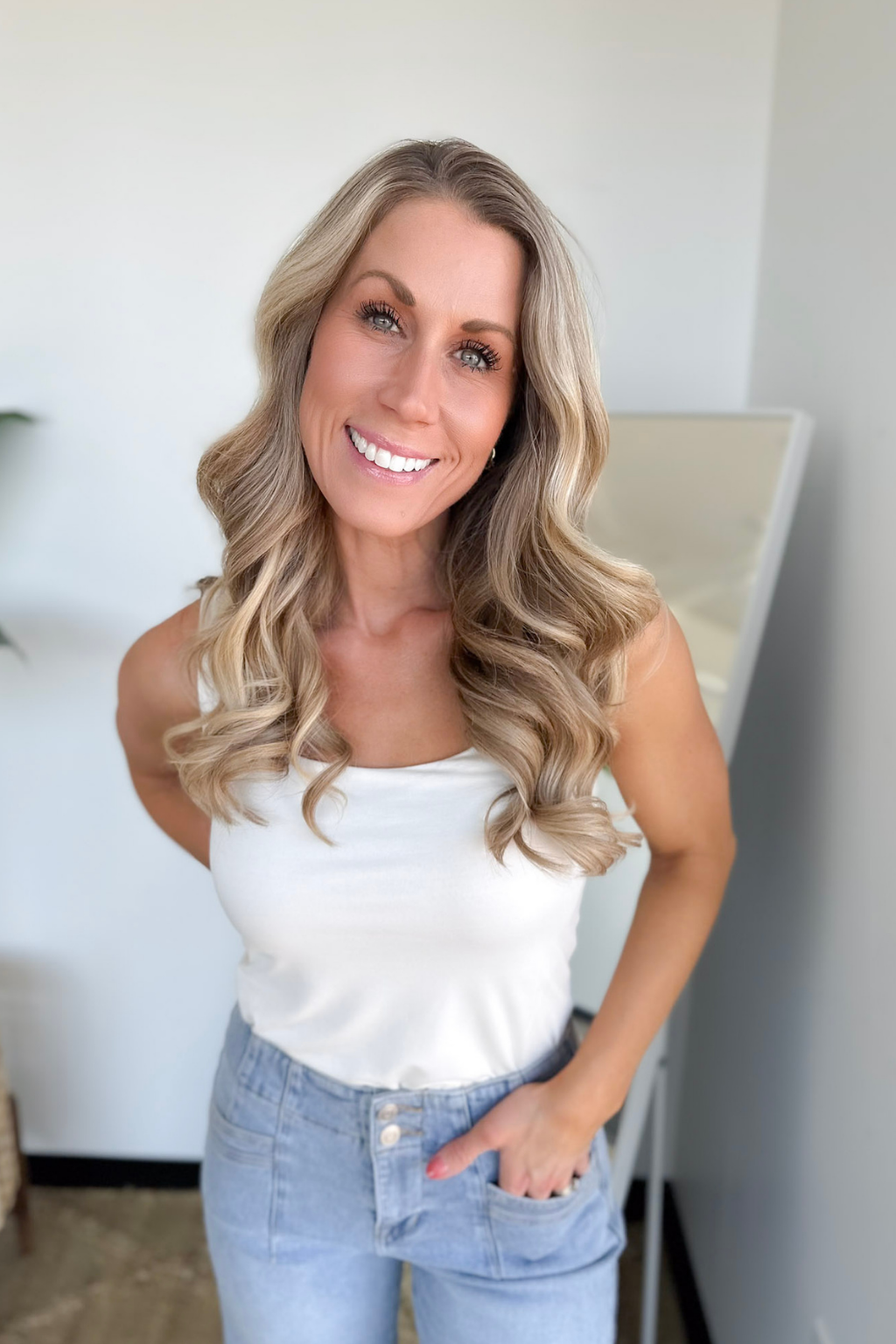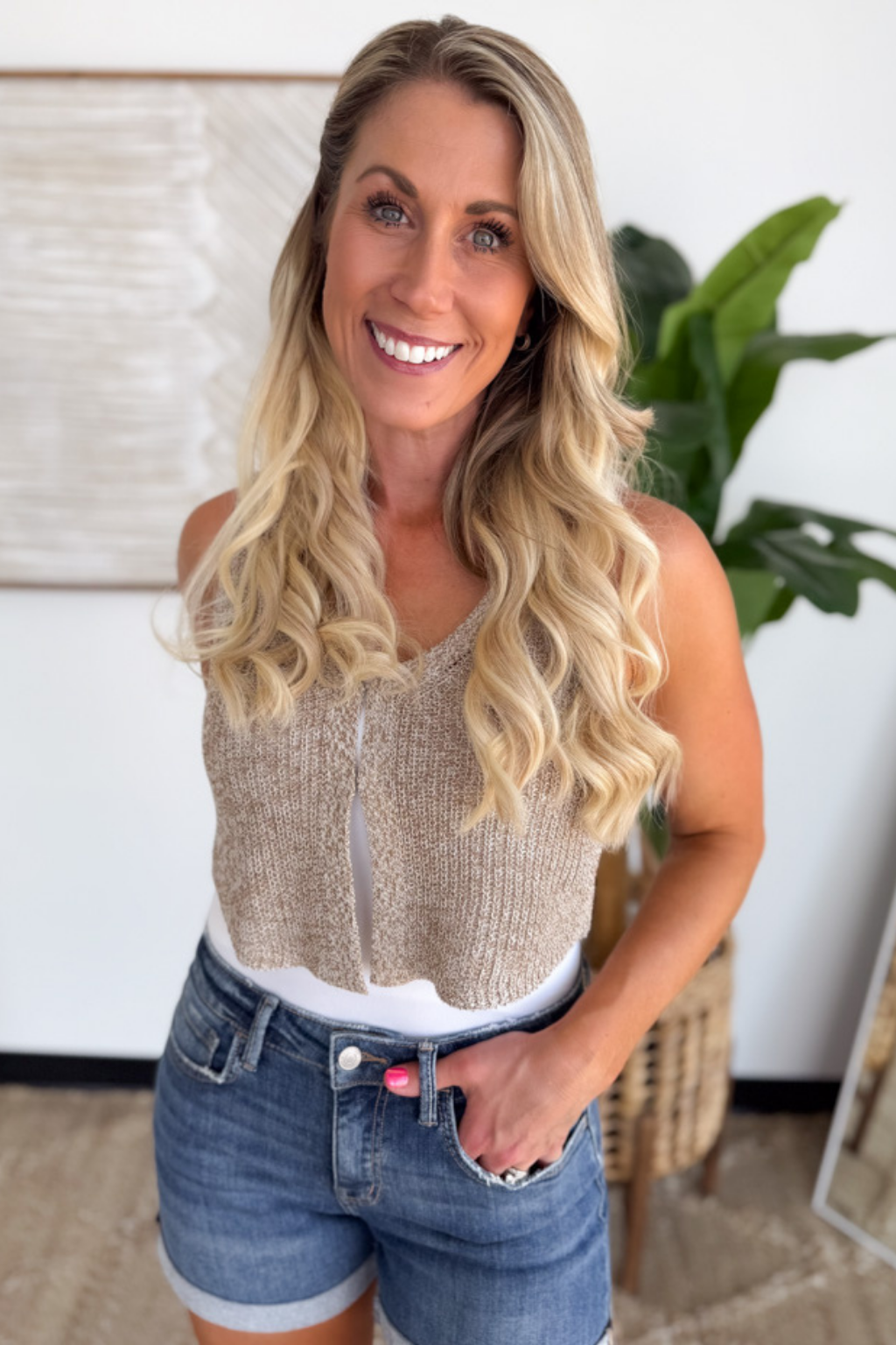 Ivory Waffle Knit Textured Sleeveless Tank