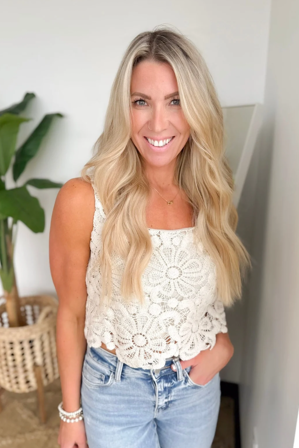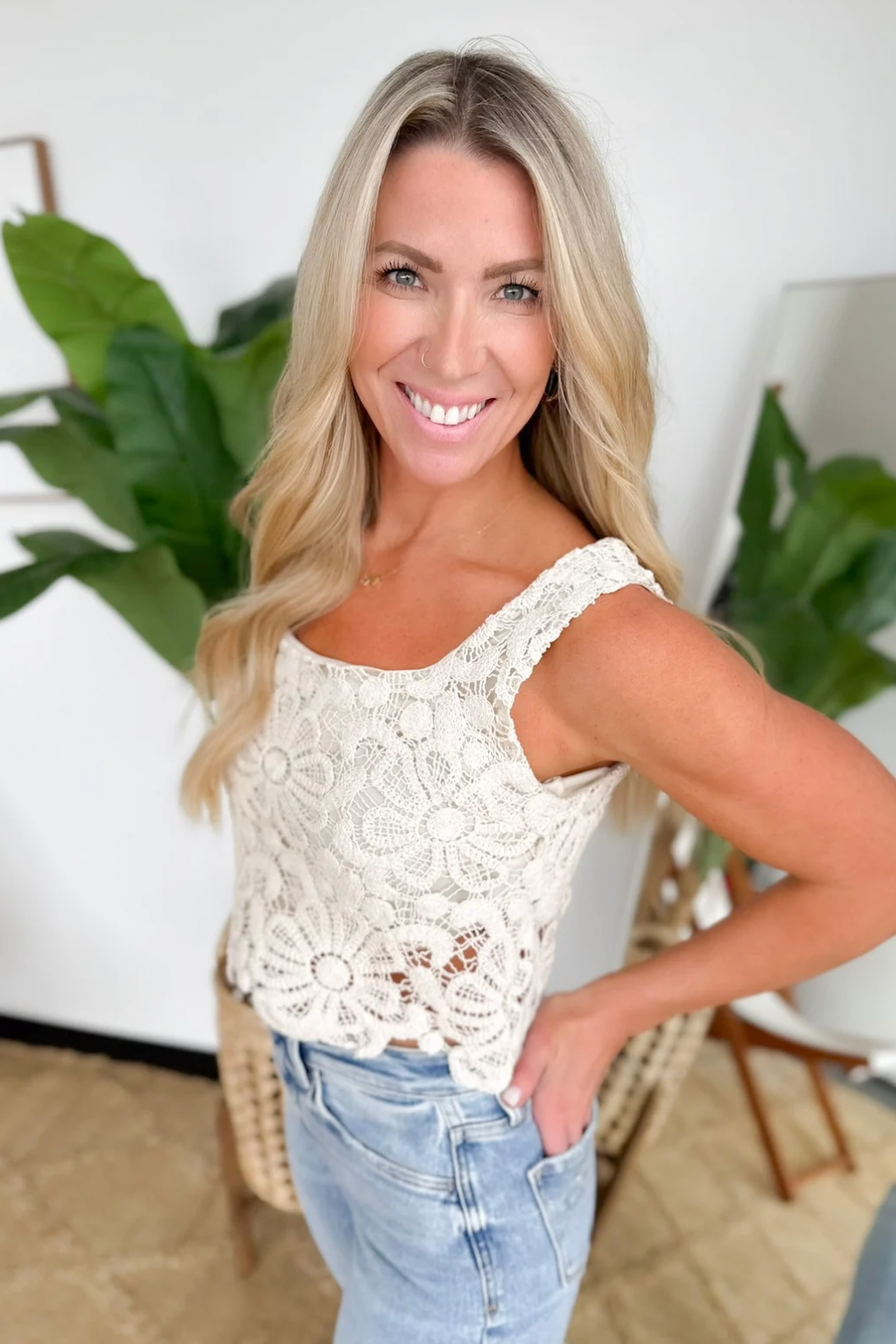 Natural Flower Crochet Tank Top