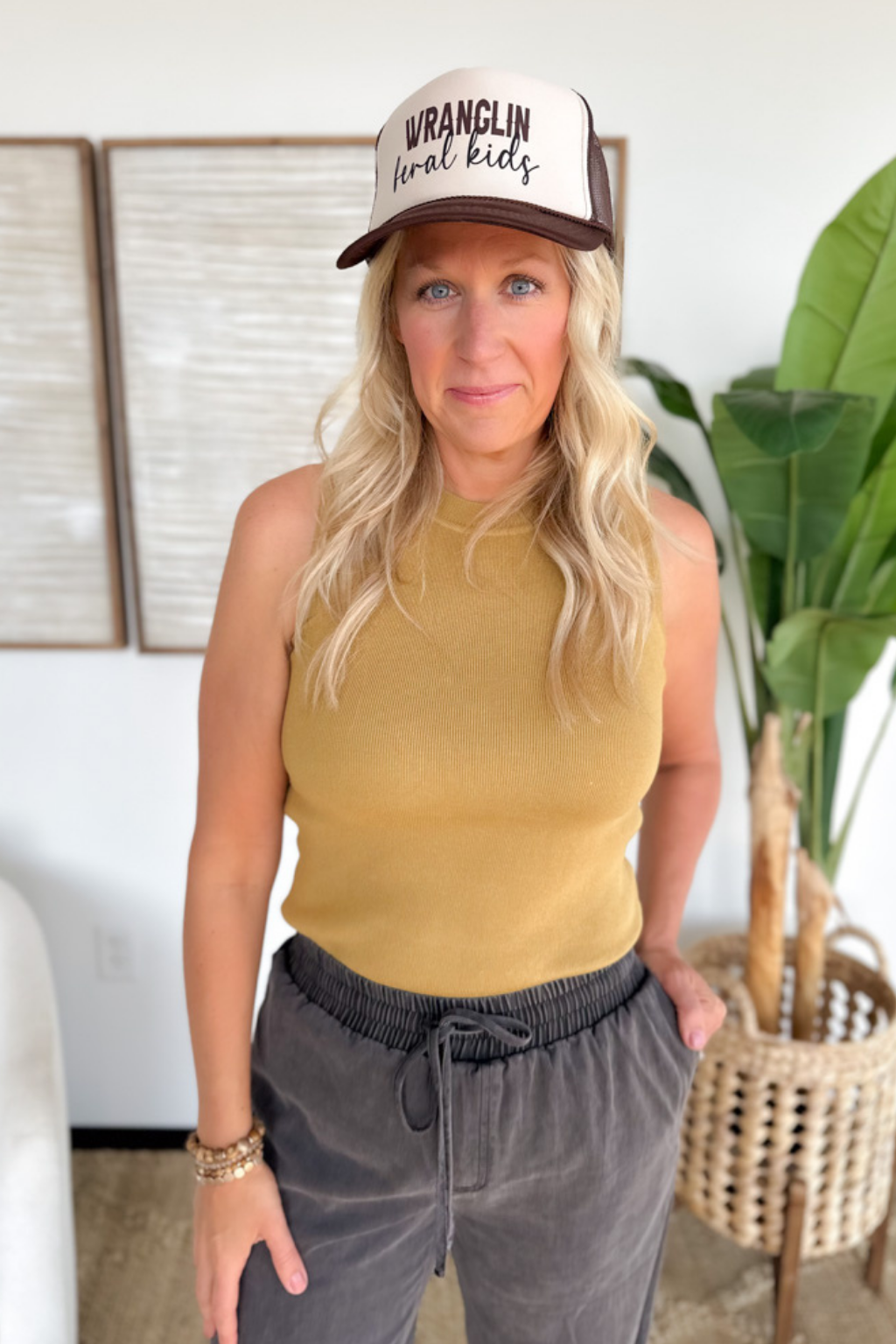 Mustard Knit Wide Strap Tank Top