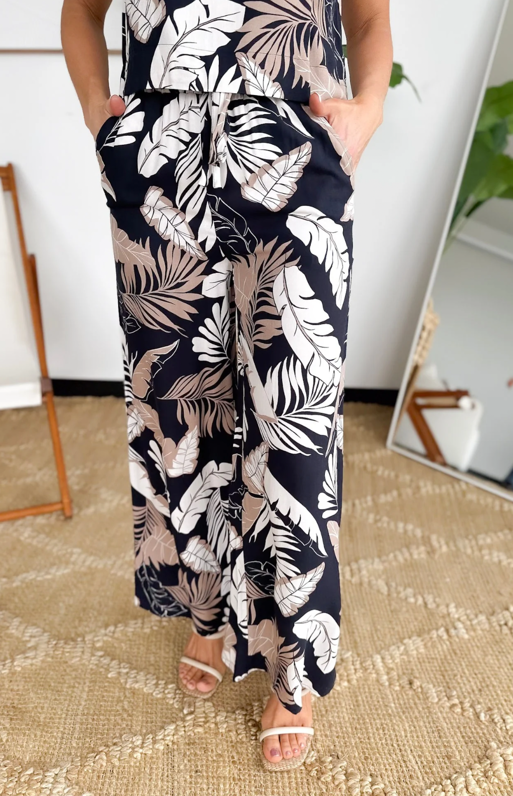 Leaf Pattern High Waisted Wide Leg Pants
