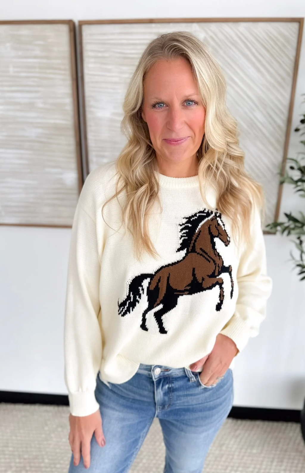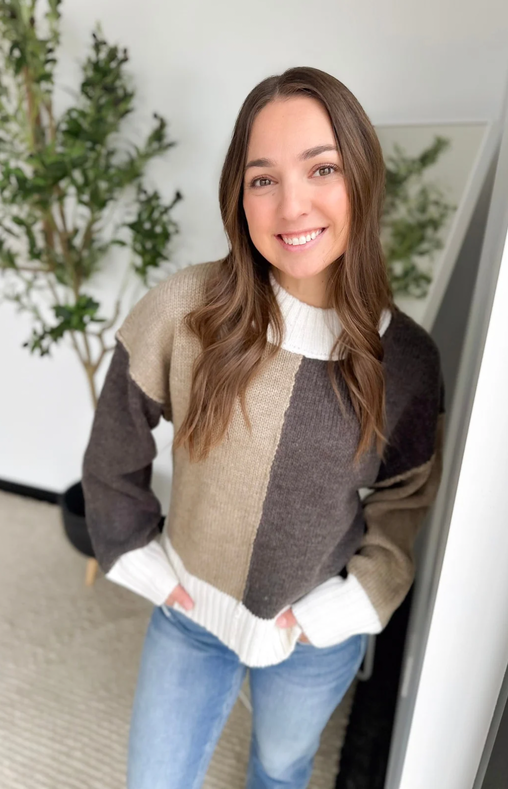 Colorblock Cream Ribbed Knit Relaxed Sweater
