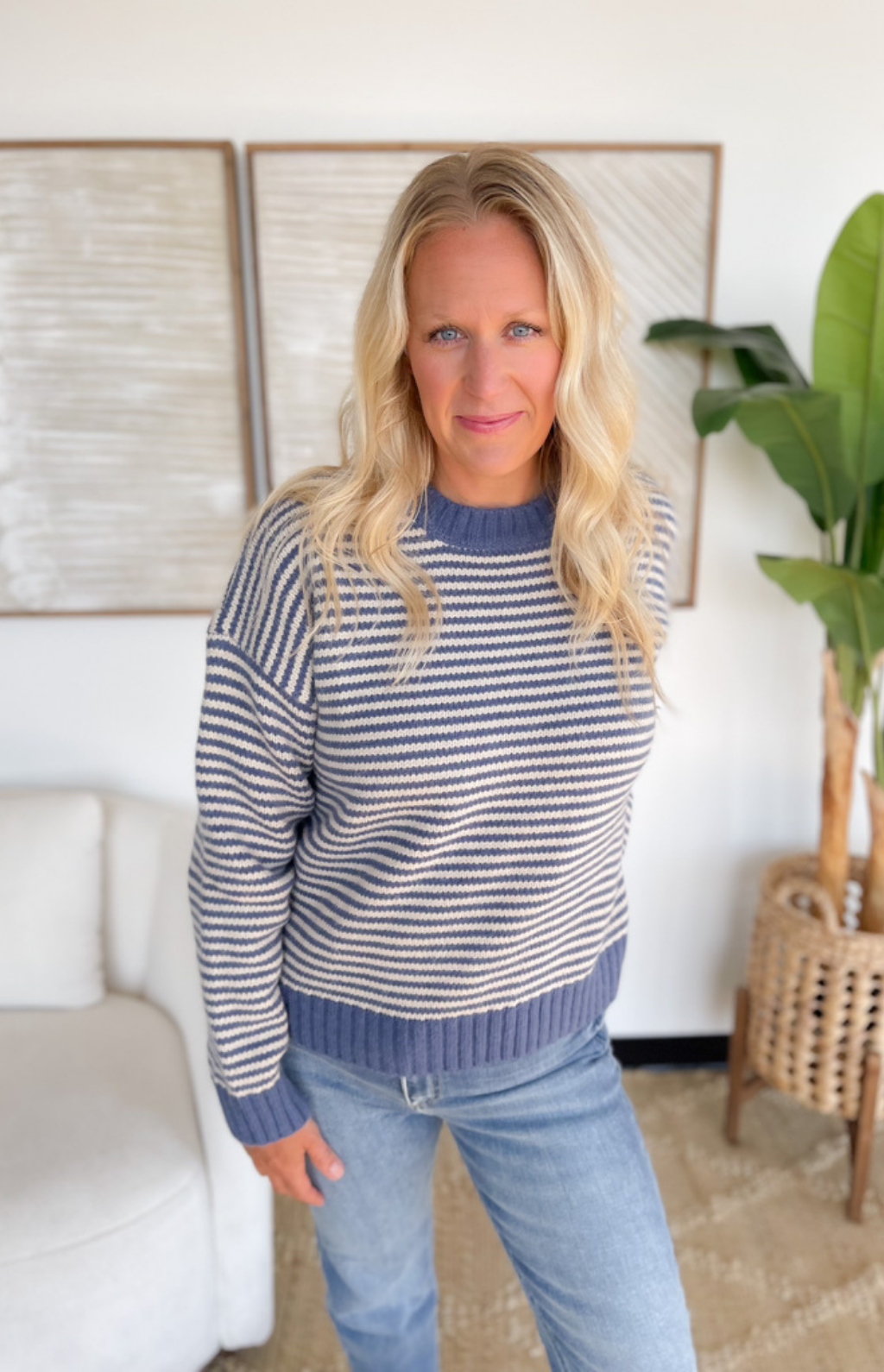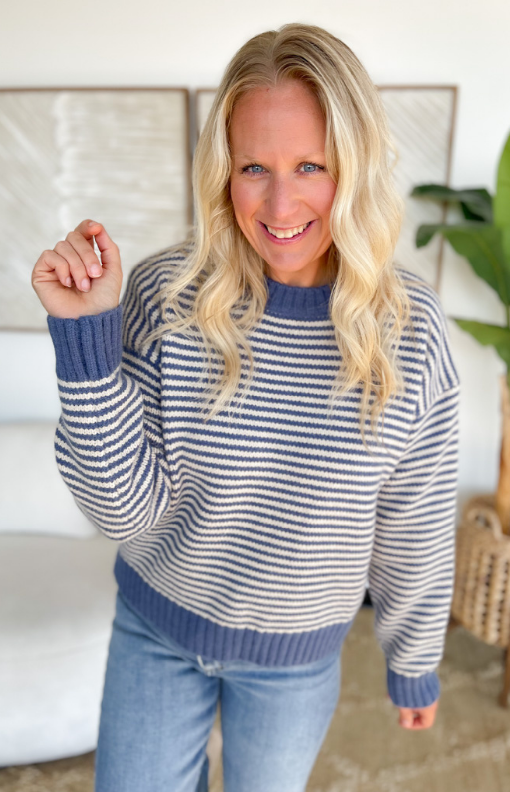 Colorblock Cream Ribbed Knit Relaxed Sweater