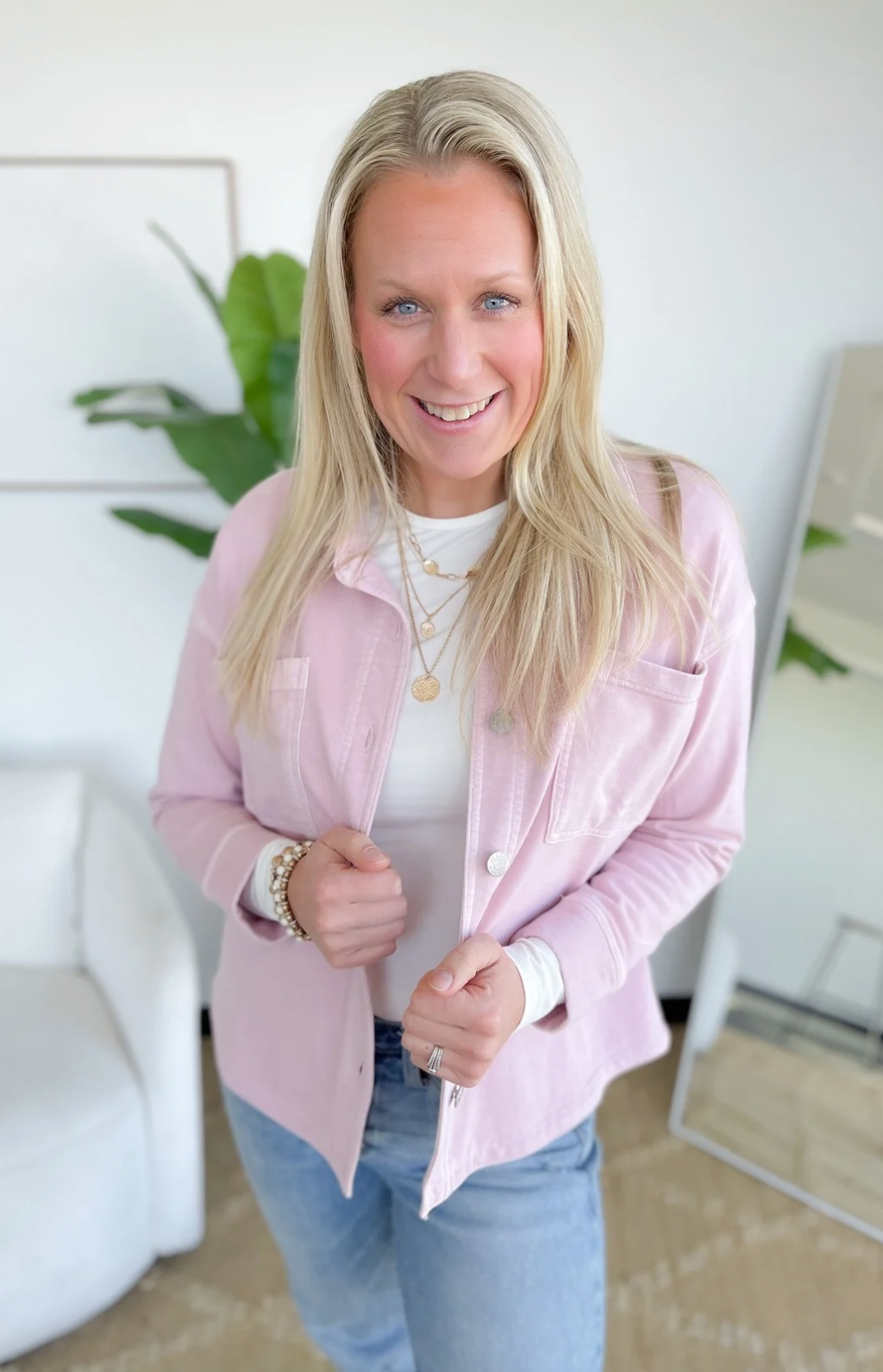 Pink Oversized Soft Denim Button Up Jacket