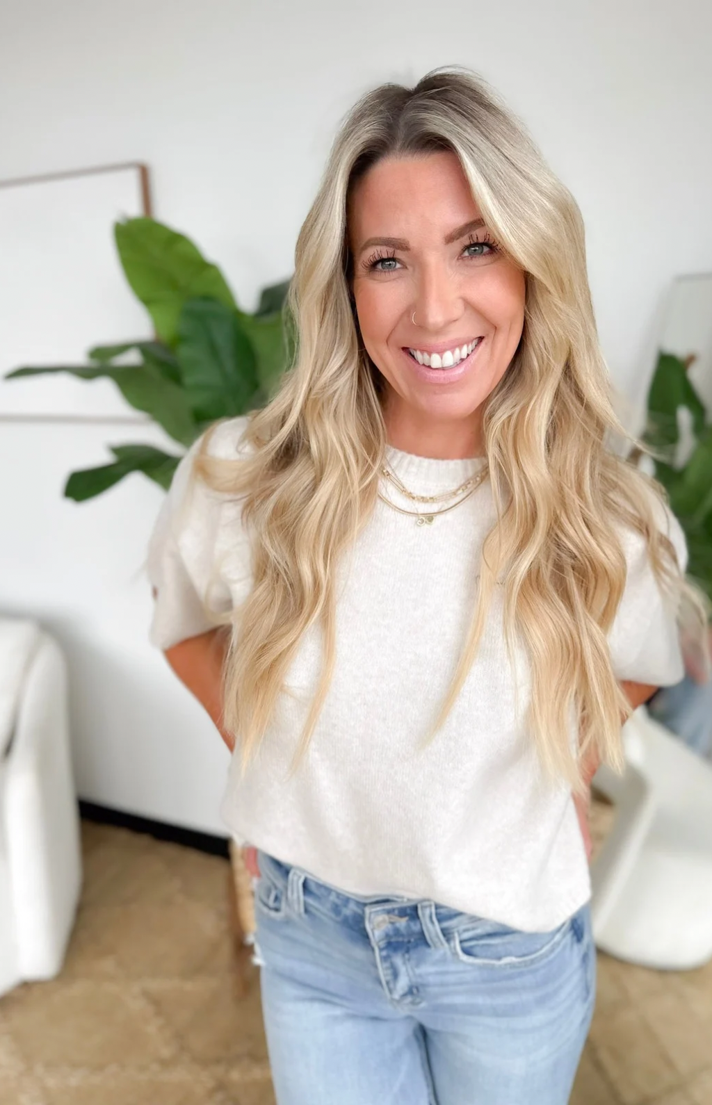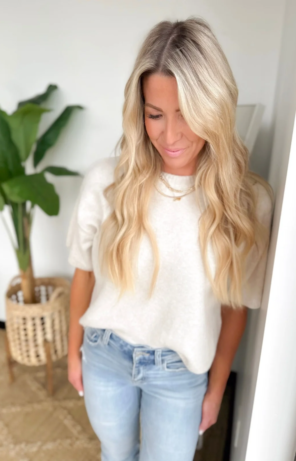 Cream Short Sleeve Boxy Sweater