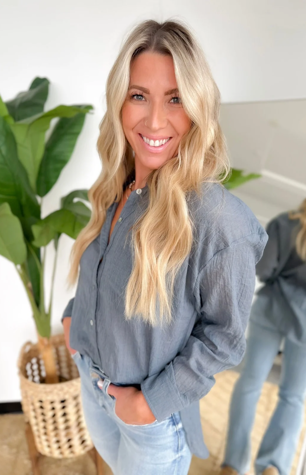 Denim Blue Oversized Button Up Lightweight Top