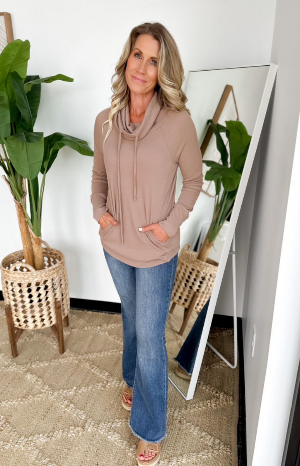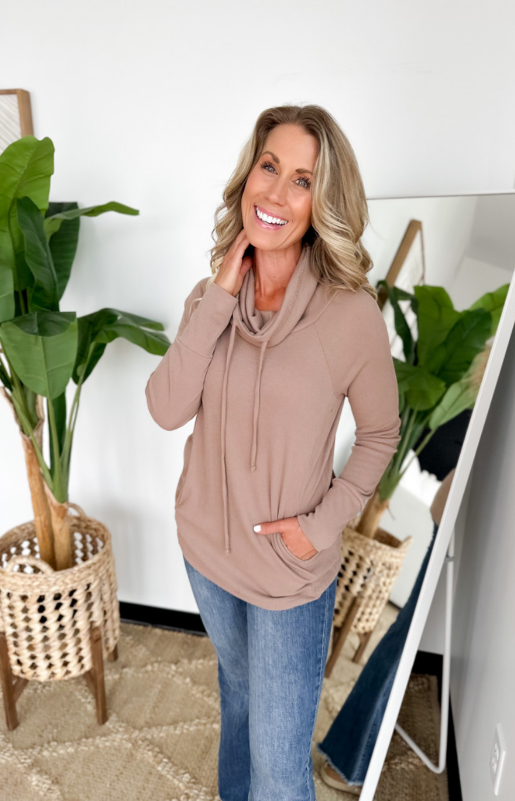 Ribbed Cowl Neck Long Sleeve Top (2 Colors)