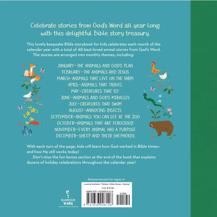 This lovely keepsake Bible storybook for kids celebrates each month of the calendar year with 48 best-loved stories from God's Word. The stories are arranged into monthly themes that relate to a specific month of the calendar year.