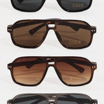 This set of sunglasses features a fashionable plastic aviator frame sunglasses style. Embark on a journey of sartorial refinement as this set of sunglasses effortlessly complements your fashion sense.