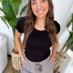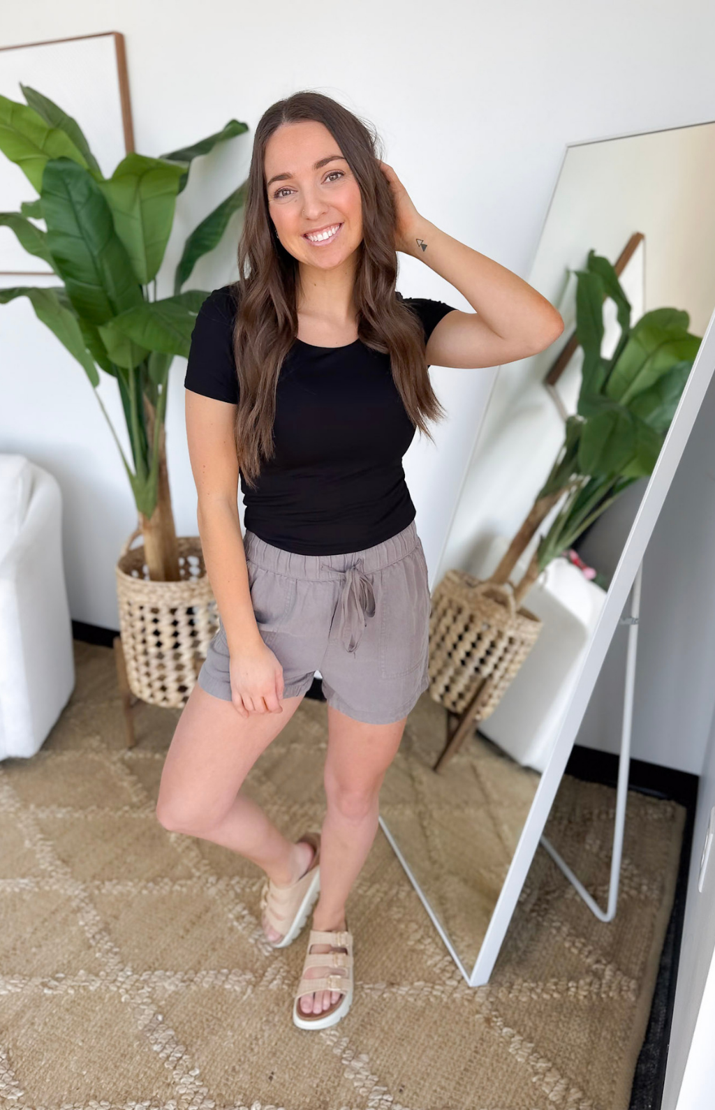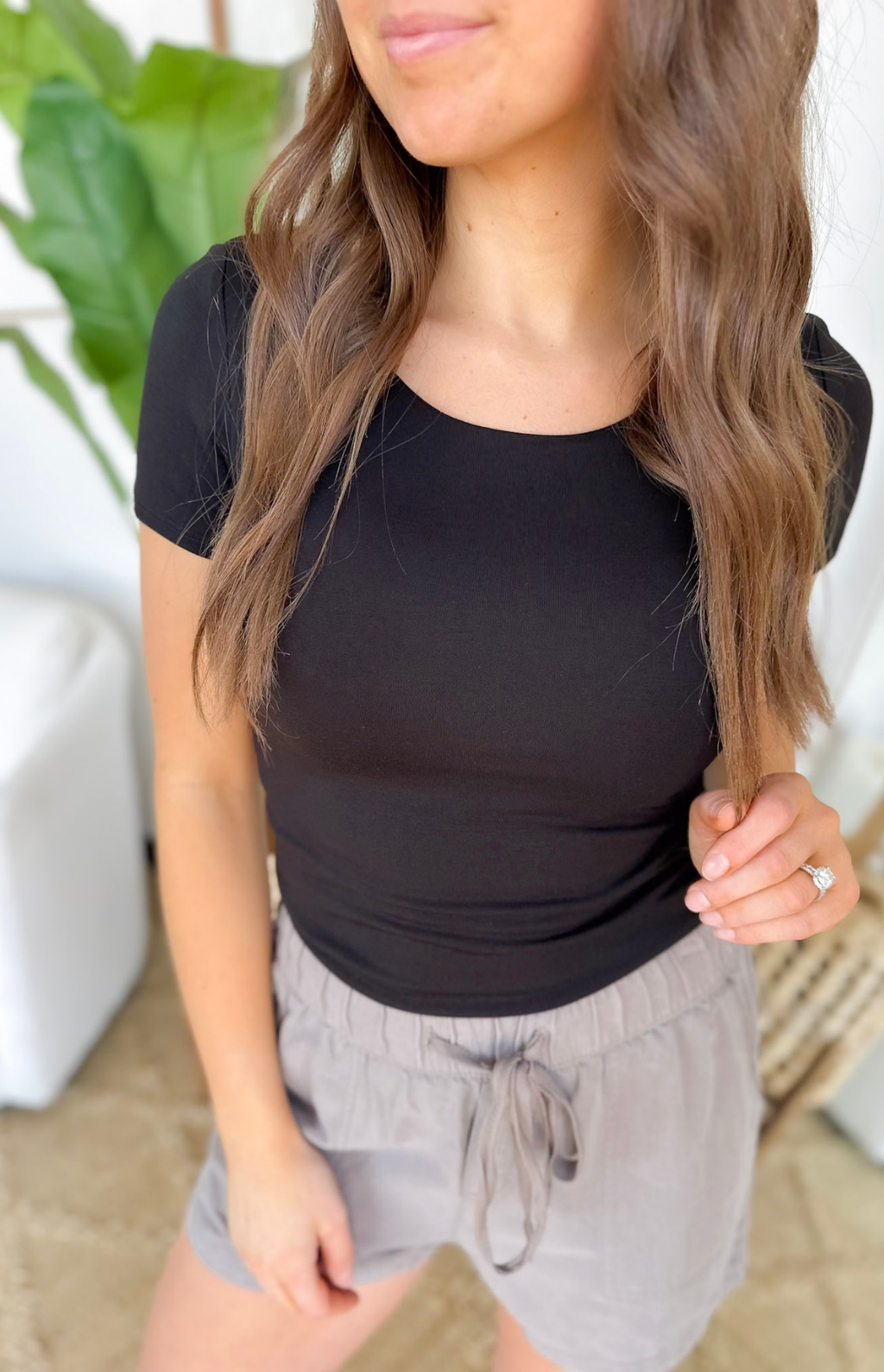 This double-layered black top is the definition of sleek and simple. The round neckline keeps it classic, while the double-layer design gives you smooth coverage and a flattering, held-together feel. It’s soft, stretchy, and comfortable enough for all-day wear—because busy days don’t slow down.