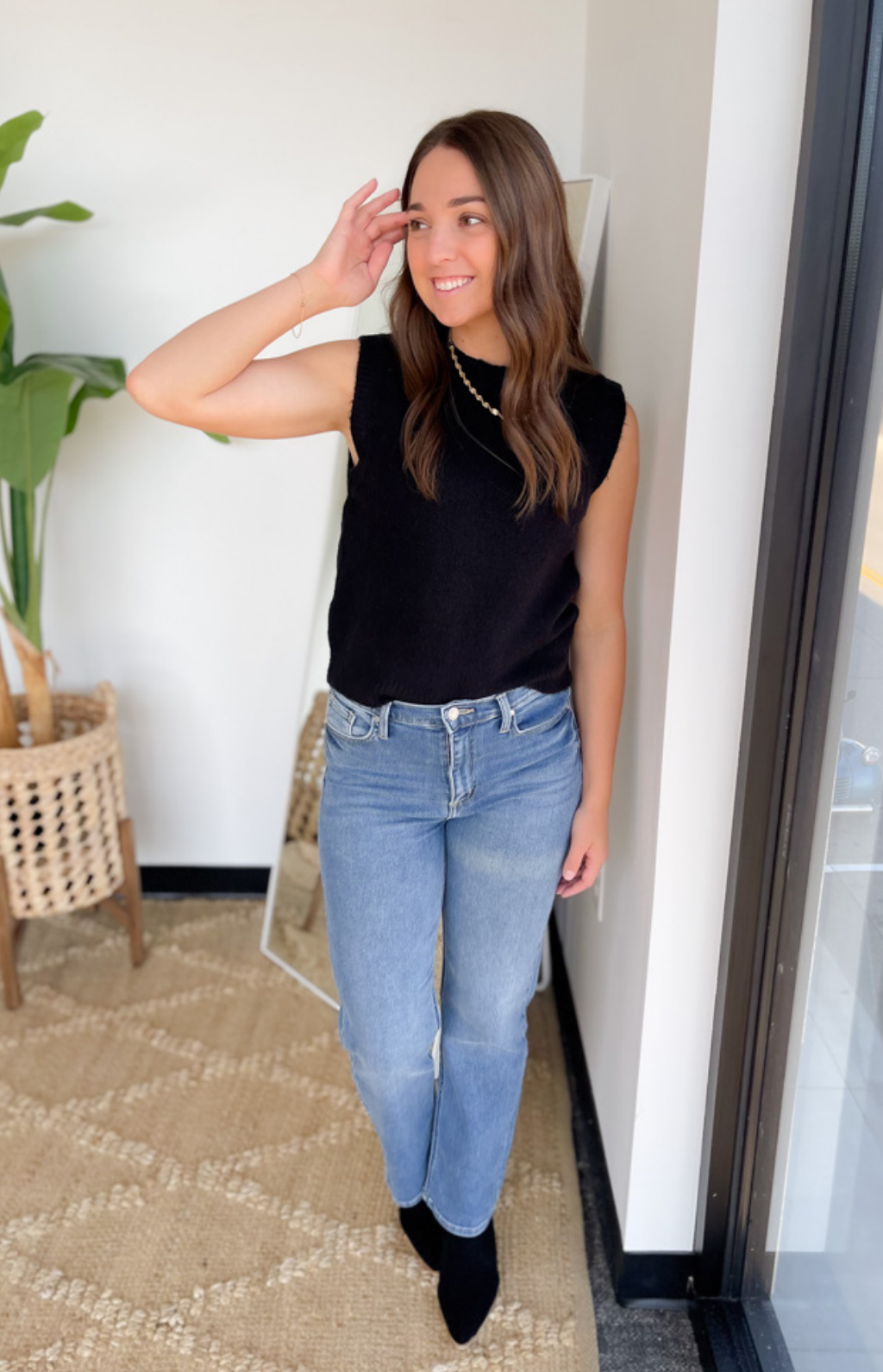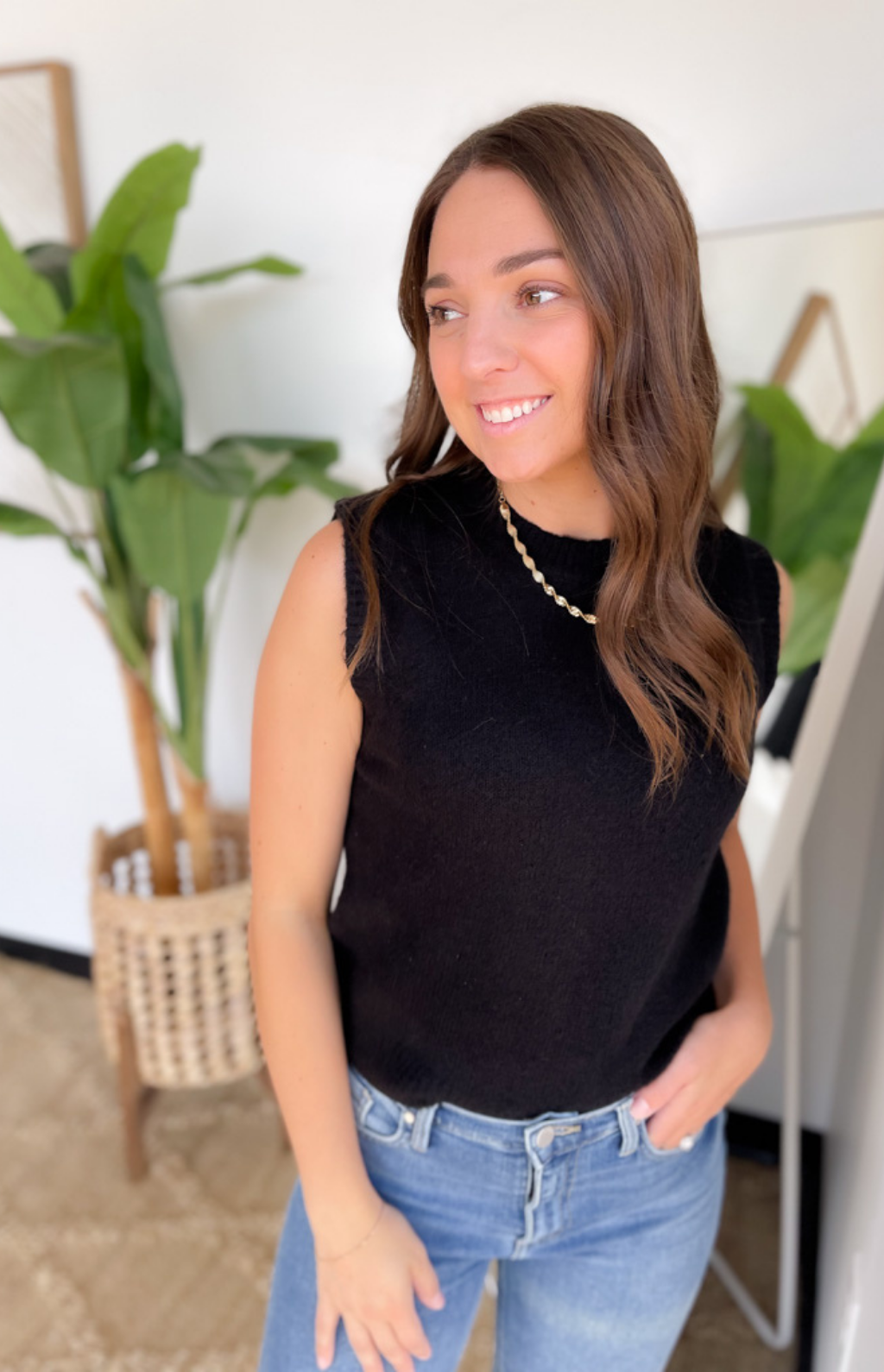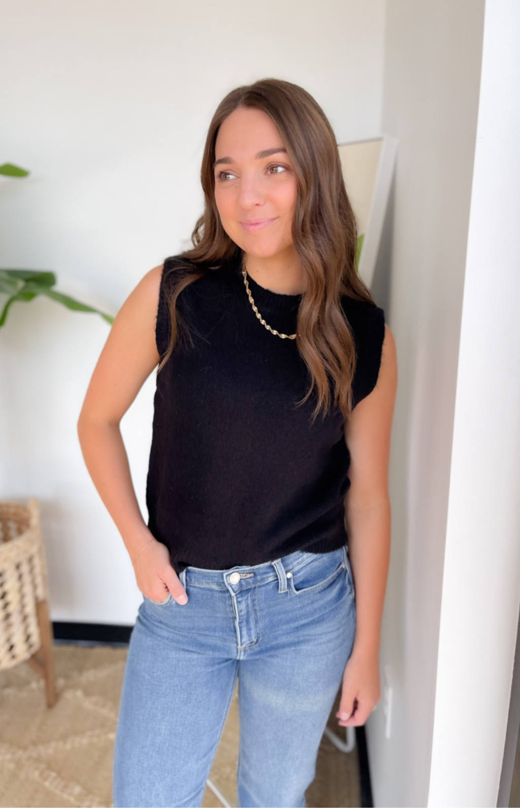 This black knit vest top is a timeless layering piece you’ll love styling again and again! Its clean, minimal design makes it easy to wear on its own with jeans or layered over a button-down for a polished look. The knit fabric adds subtle texture while keeping it comfortable and versatile. A closet staple that transitions seamlessly from workdays to weekends.