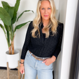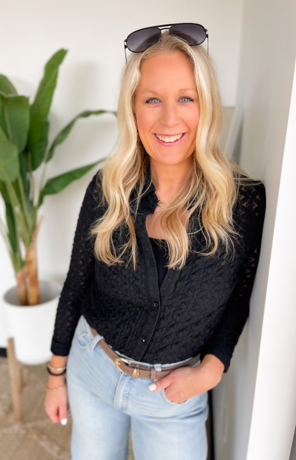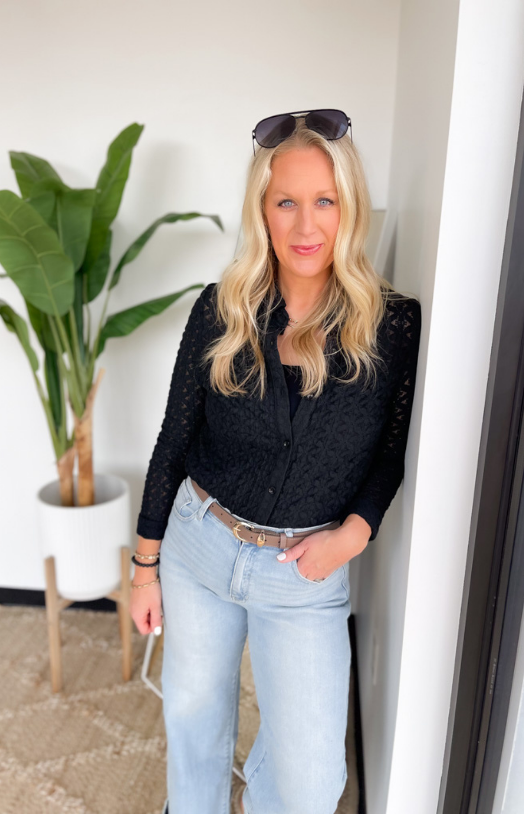 This Black Lace Top is a versatile and chic addition to your wardrobe! This top features a classic button-down style with a collared neckline and a stunning black lave material. This top offers a lightweight and breathable feel. The button downs style makes this top easy to layer or wear on its own. Style with jeans and heels for a stunning date night look!
