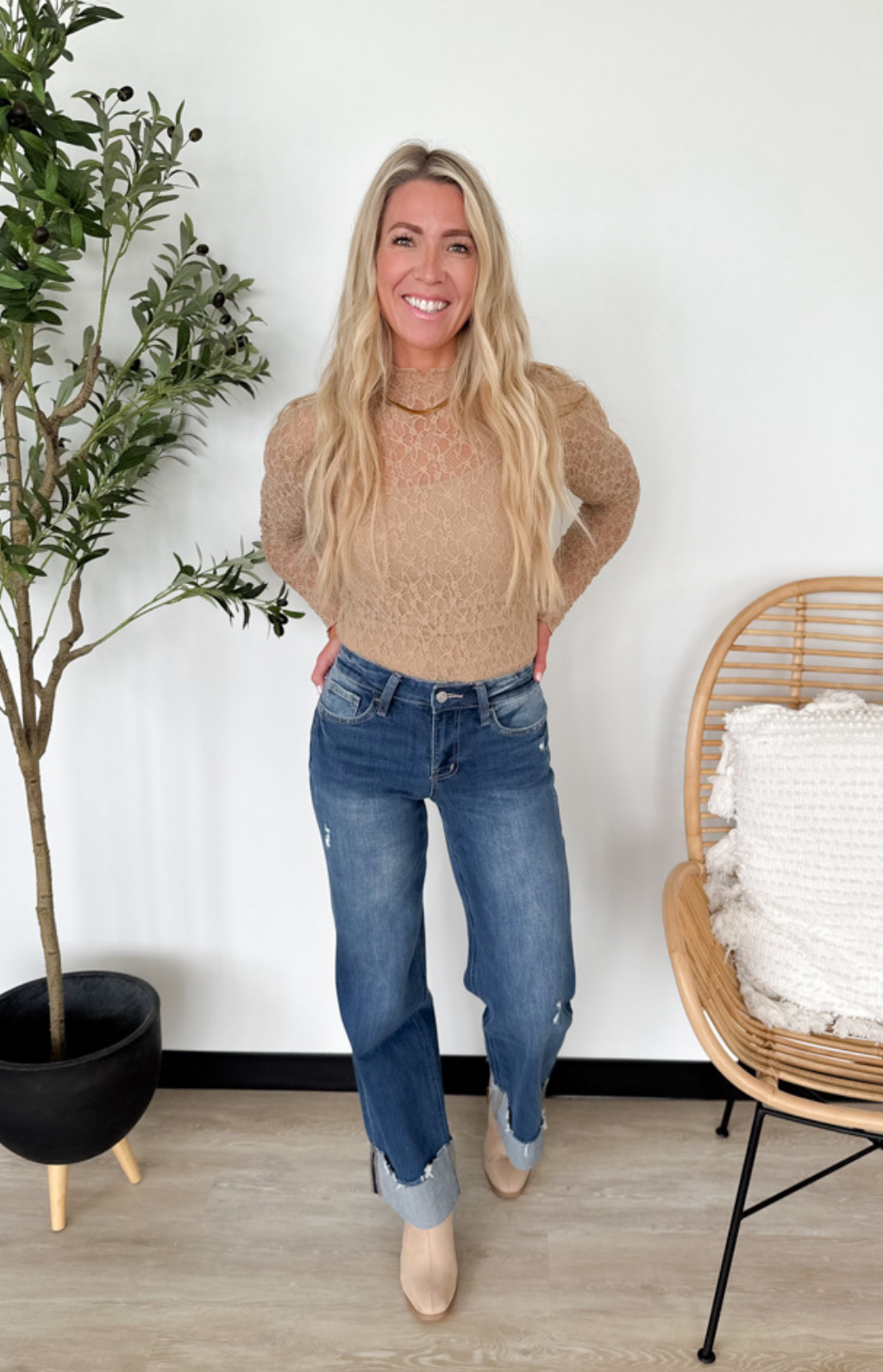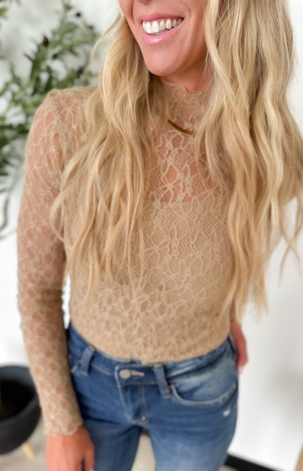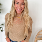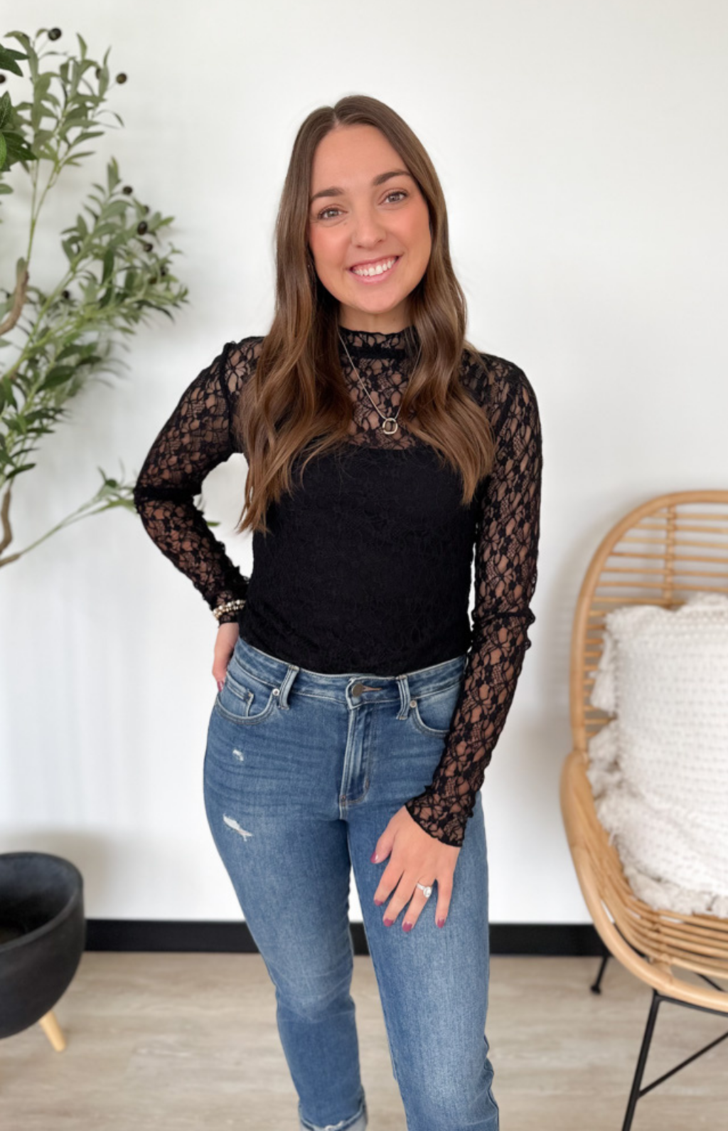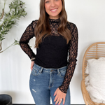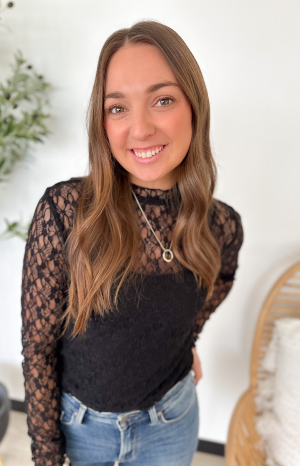 This lace top is the perfect mix of feminine and bold. The long sleeves and intricate lace detailing give it a romantic, elevated feel, while the classic hue adds depth. Lightweight and breathable, it layers beautifully over a cami for everyday wear or can be dressed up for special occasions. Pair it with jeans for a chic casual look or with a skirt and heels for something more polished. A statement piece that’s equal parts graceful and versatile.