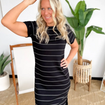 Black Soft Knit White Stripe Maxi Dress