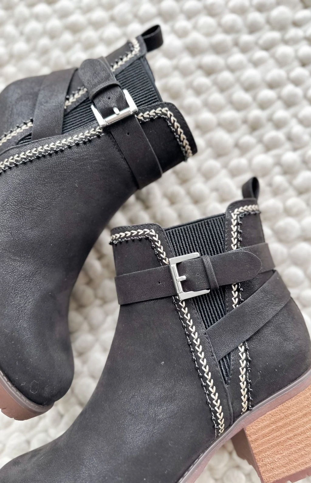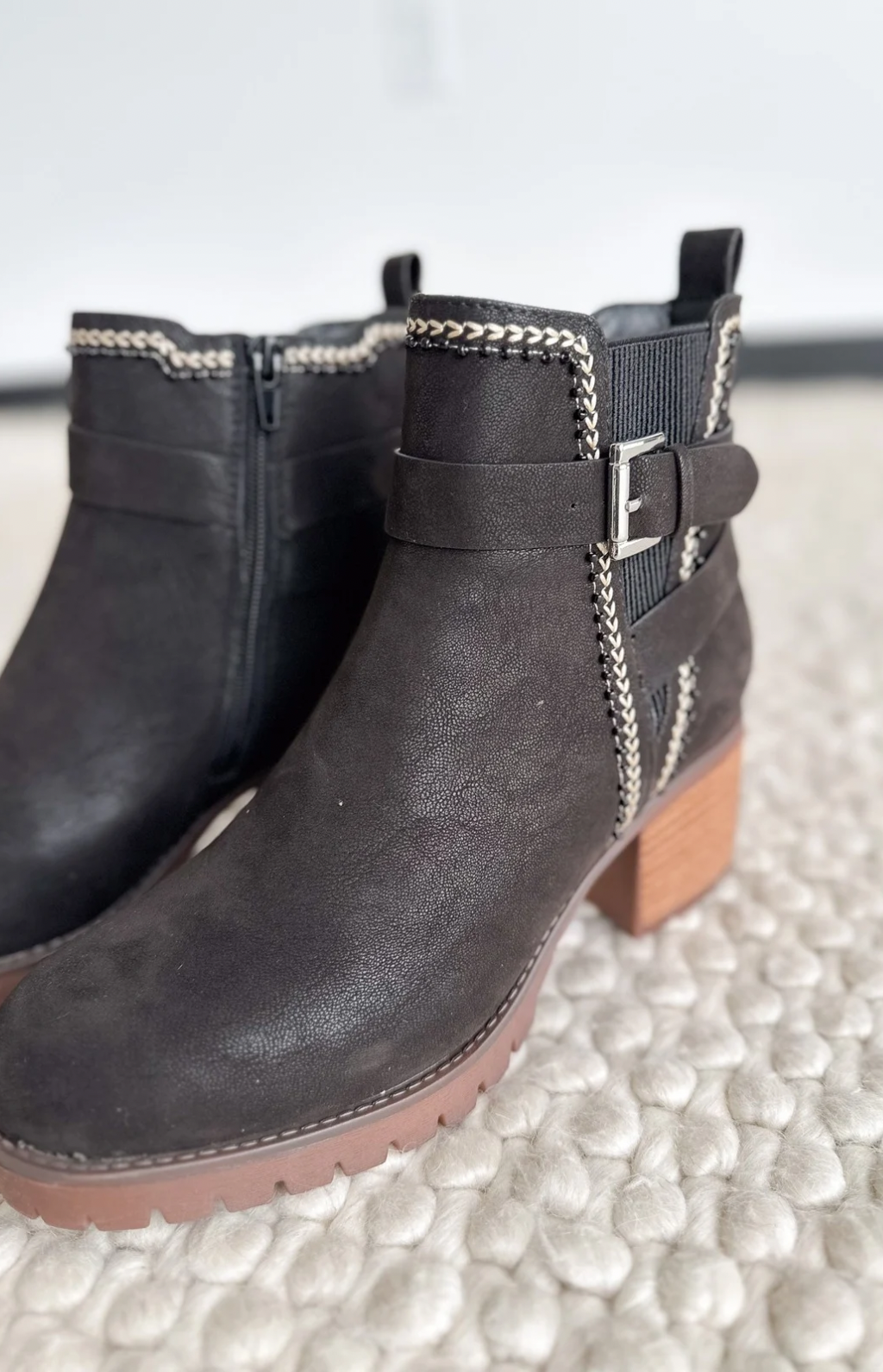 Add this fun statement bootie to your fall wardrobe. Crafted from sleek, vegan suede, this boot features a polished silver buckle and a chic brown outsole. It sits on a refined 2‑inch heel that elevates your everyday look, while the easy zip lets you slide in and go. Stylish, comfy, and season-ready—these boots are the fall staple your wardrobe deserves.