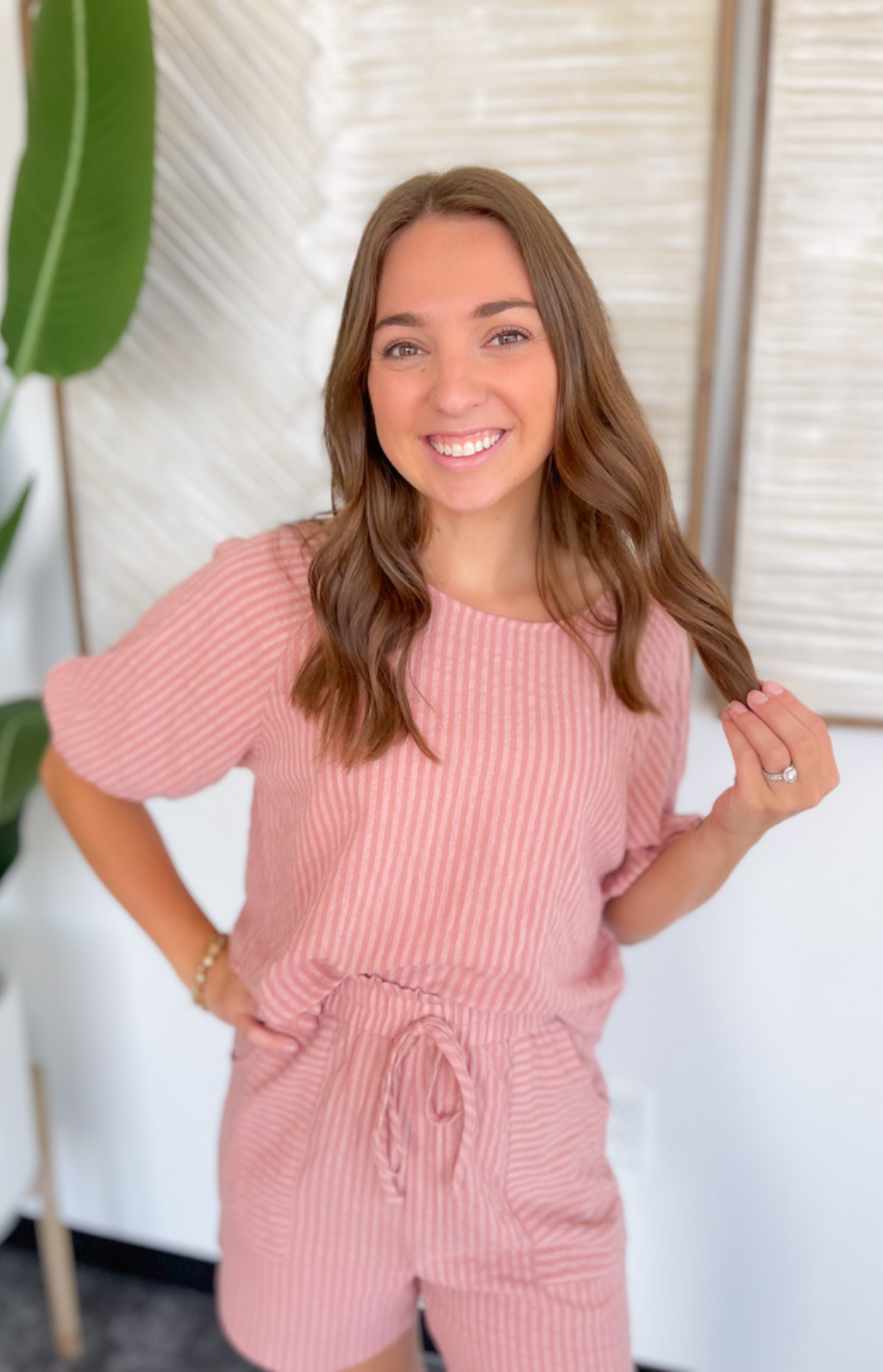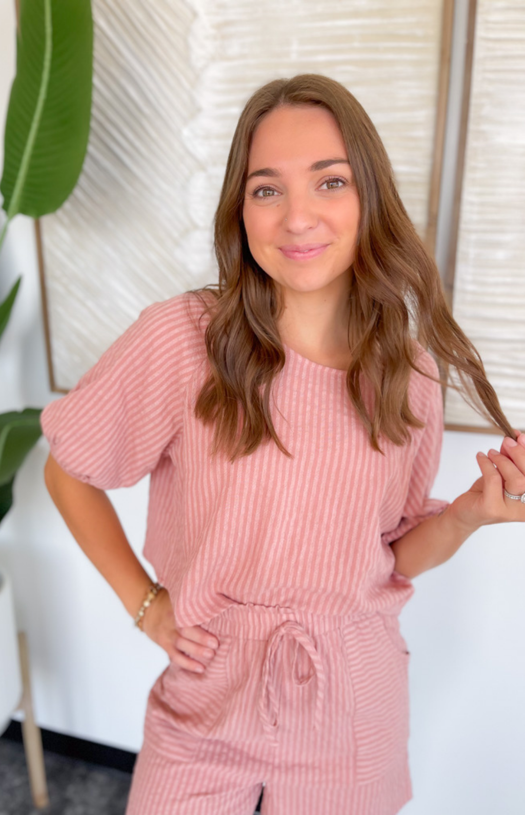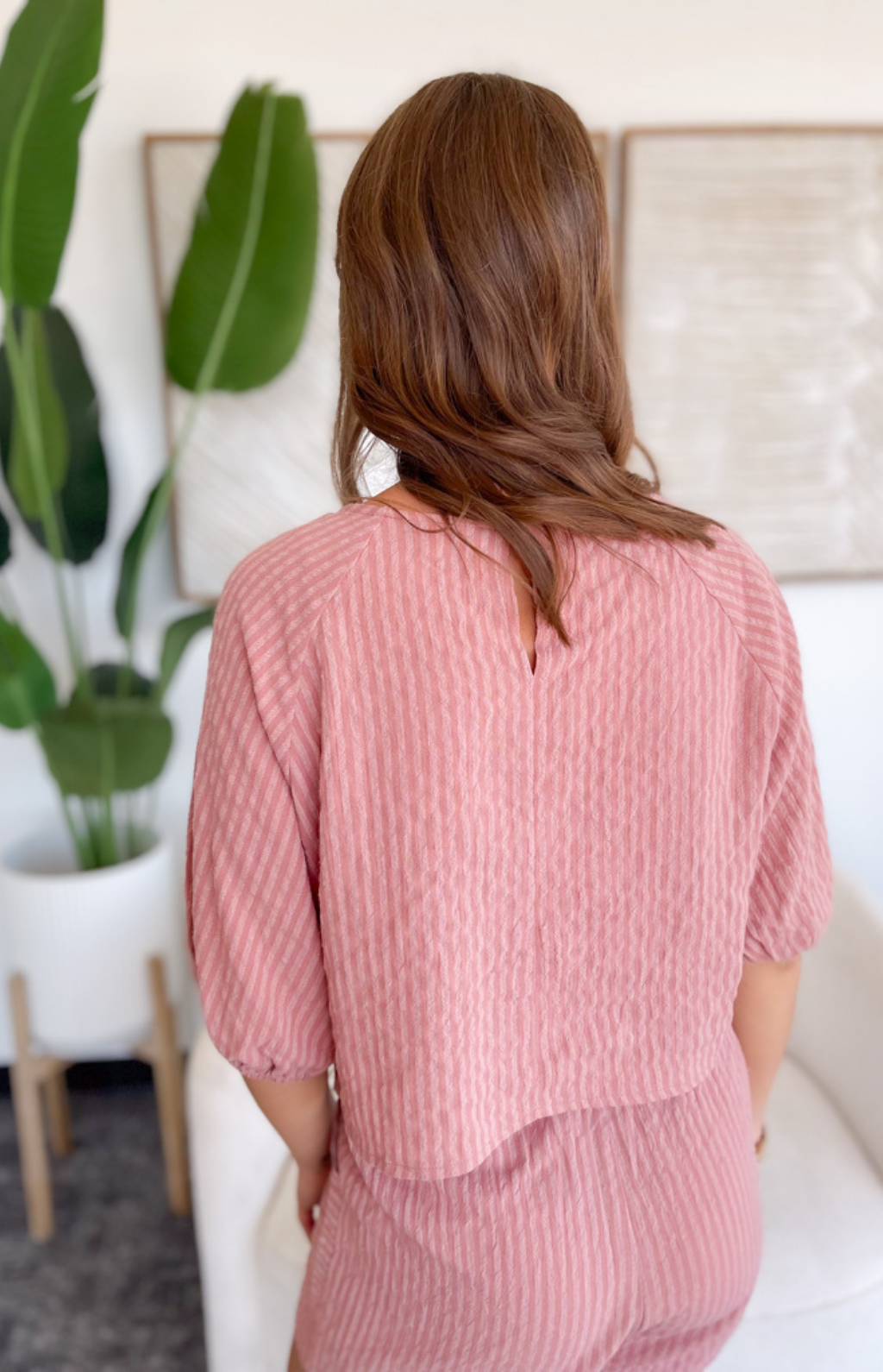 Add a pop of playfulness to your wardrobe with our Blakely Top! Featuring a lightweight material, ideal for warm summer days, a fun puff sleeve detail and a cropped length. Style with the matching shorts for a trendy matching look or style with jean shorts!
