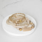 Beaded Bracelets Stack Semi Precious Metal Glass Plaque - Browns