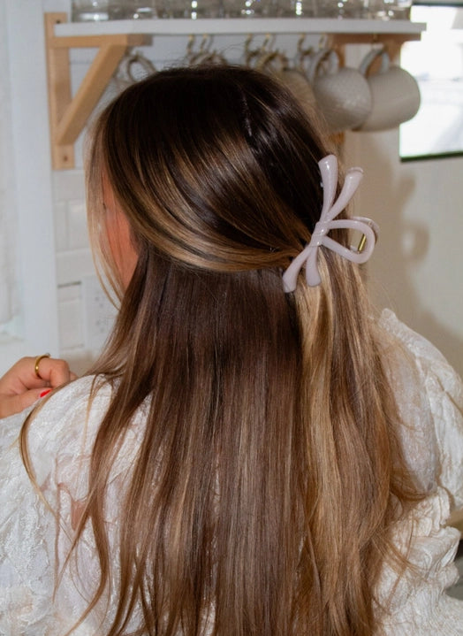 This claw clip has a classy chic look, the base is a looped claw clip that forms a bow at the base of both sides, making it simple but elegant for any look and holds any hairstyle you can think of; It's the perfect addition to your closet!