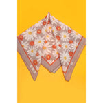 This Poppy & Daisy Scarf, made from breathable soft feeling fabric, this scarf features a delightful cream-colored daisy print paired with the bright orange poppy design, bringing a playful and feminine vibe to your look. Whether you wear it as a headband, neck scarf, wrist wrap, or tie it to your bag for a pop of color, this scarf is sure to fun make a statement.