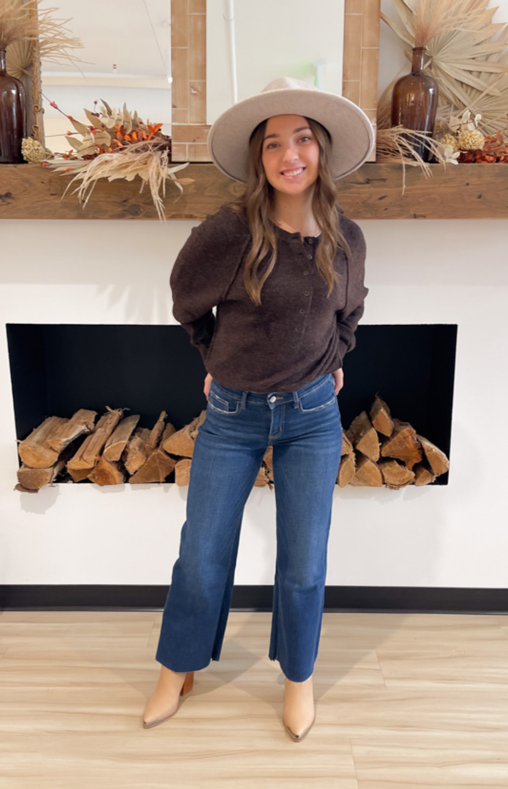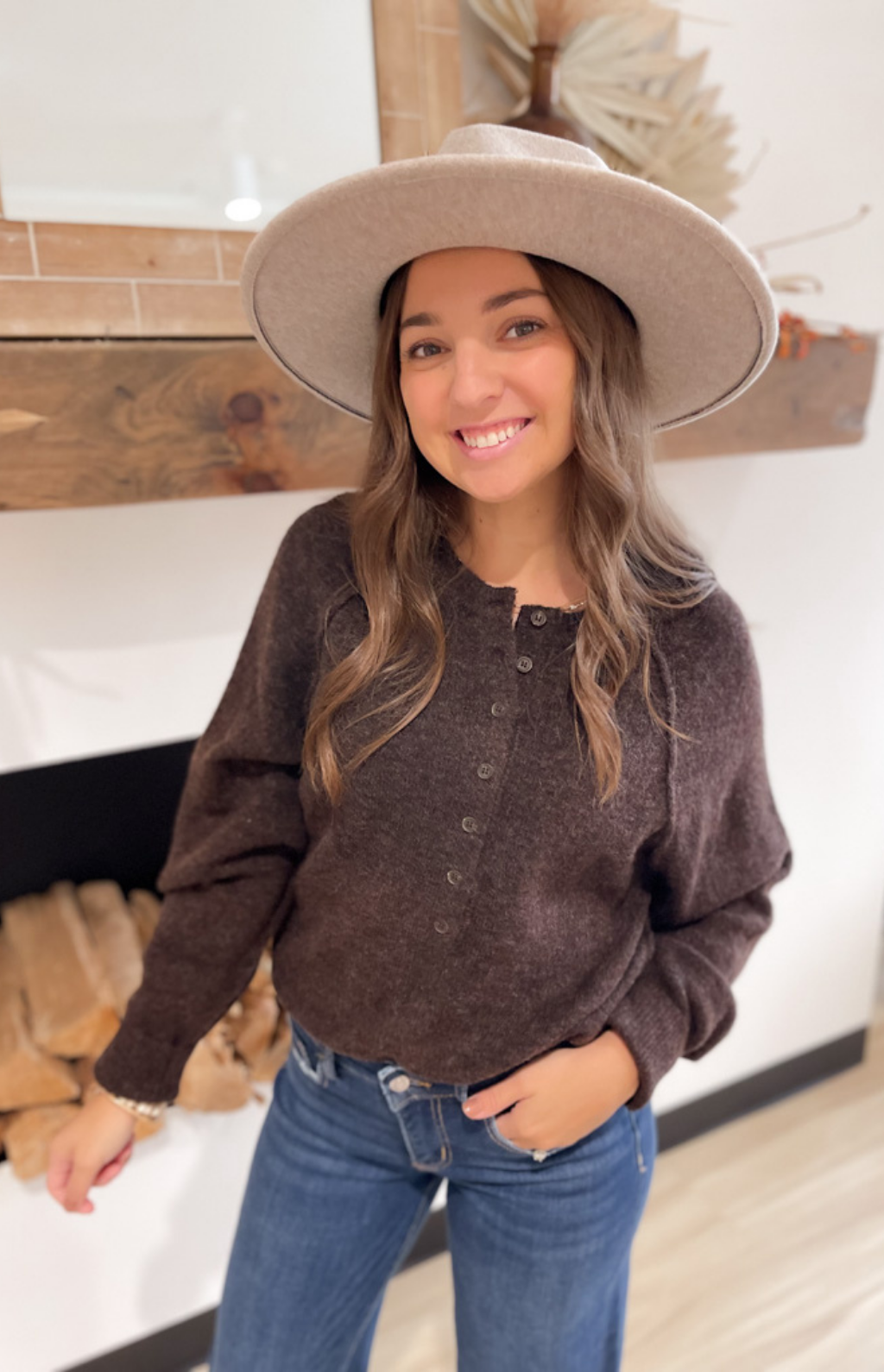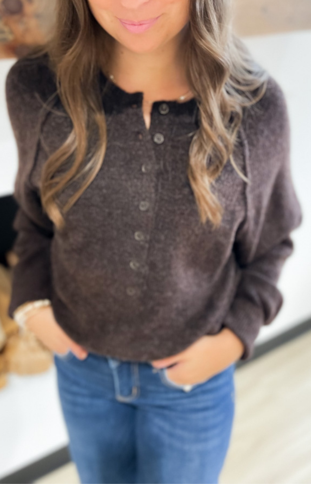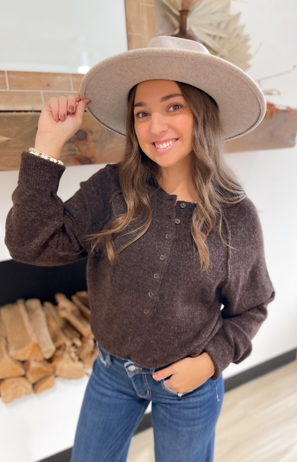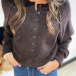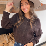 This taupe knit sweater is a timeless staple with a touch of casual charm! The half-up button detail adds just the right amount of interest while letting you adjust the neckline to your liking. Soft, cozy, and easy to style, it pairs perfectly with jeans for a relaxed day out or with trousers for a more polished vibe. A go-to layer you’ll reach for again and again when you want effortless comfort that still looks put-together!