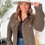 Brown Ribbed Button Up Jacket