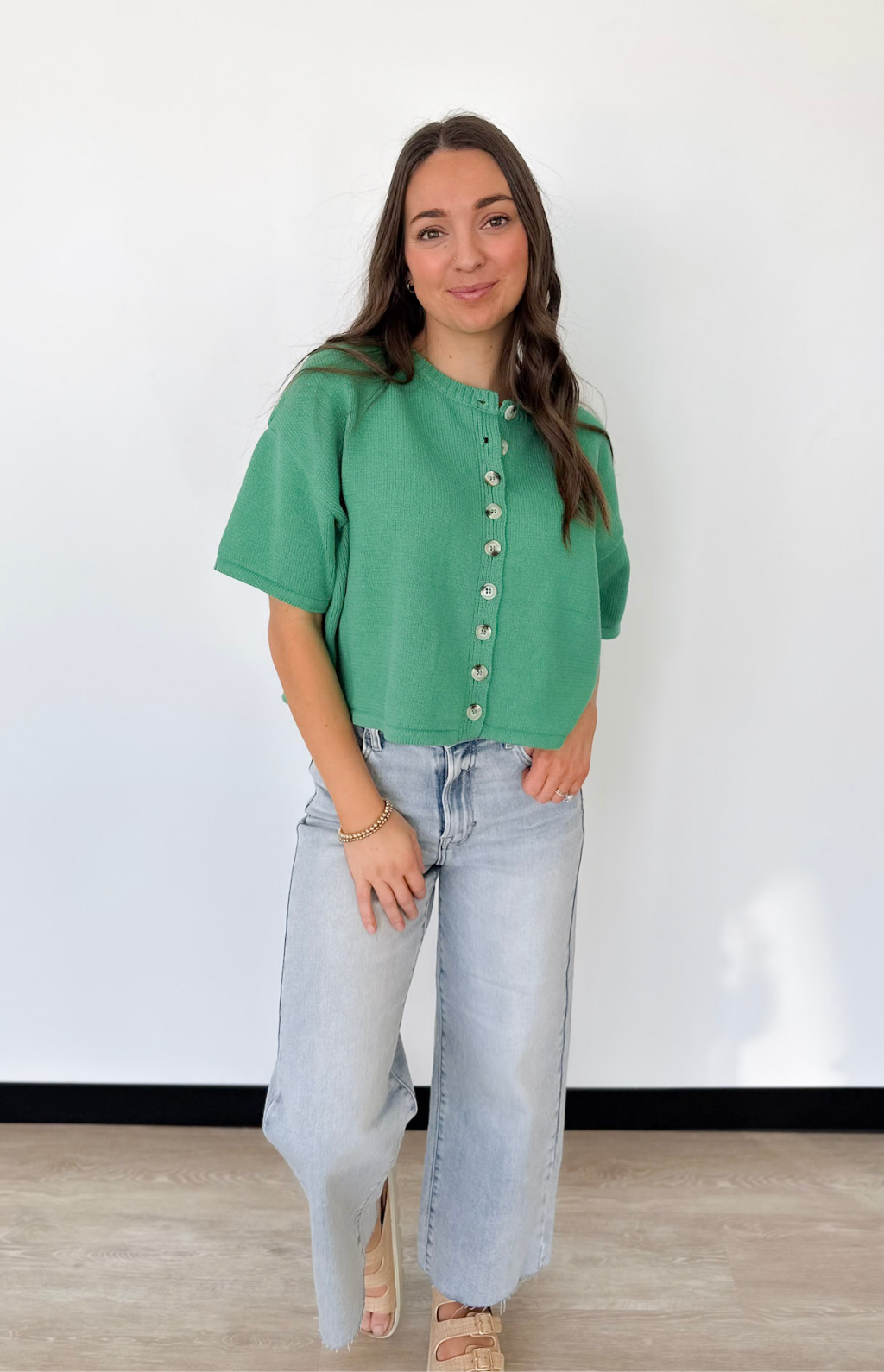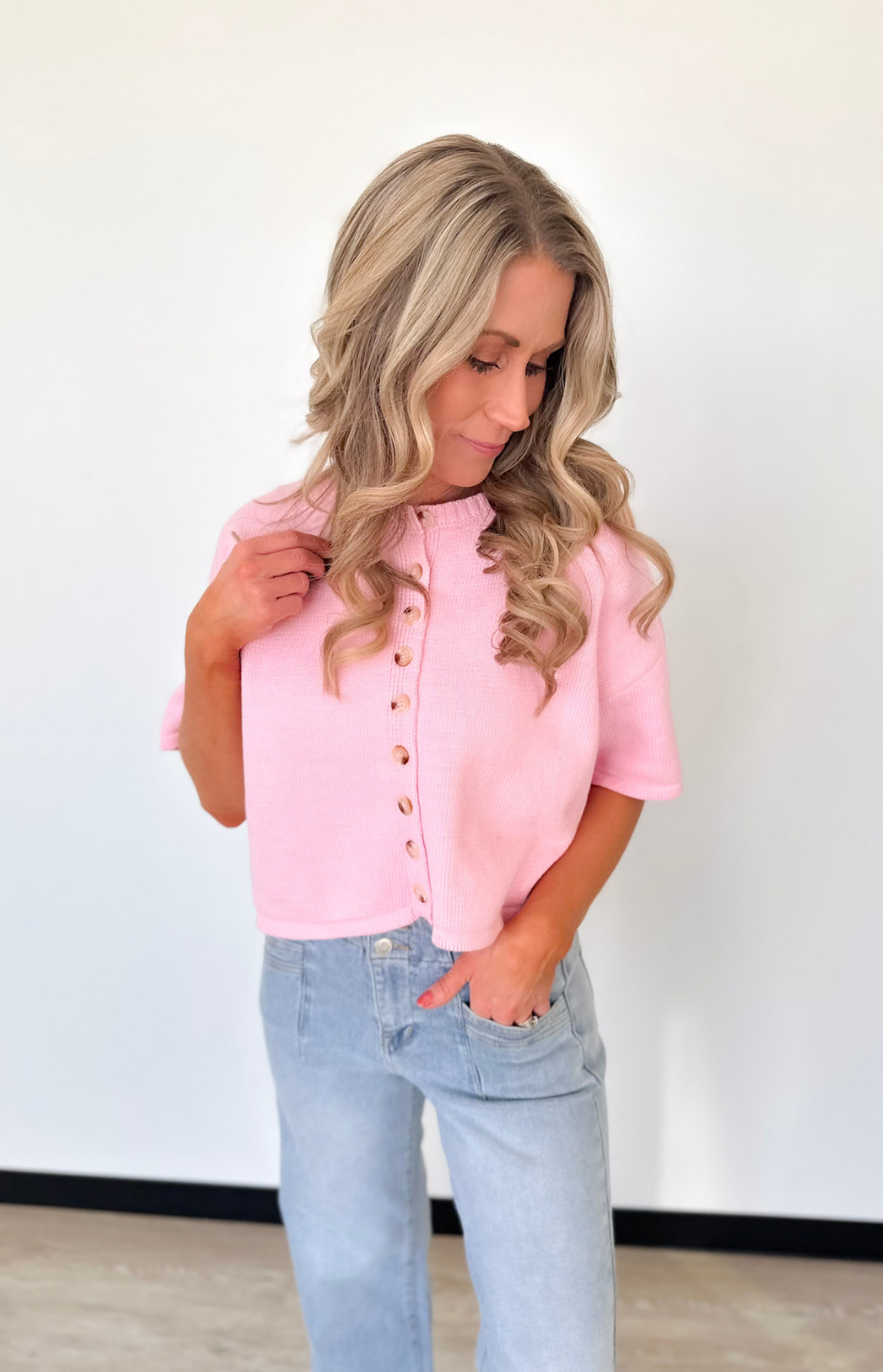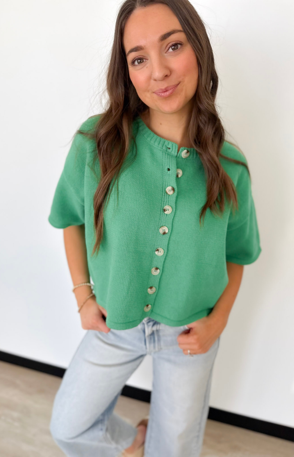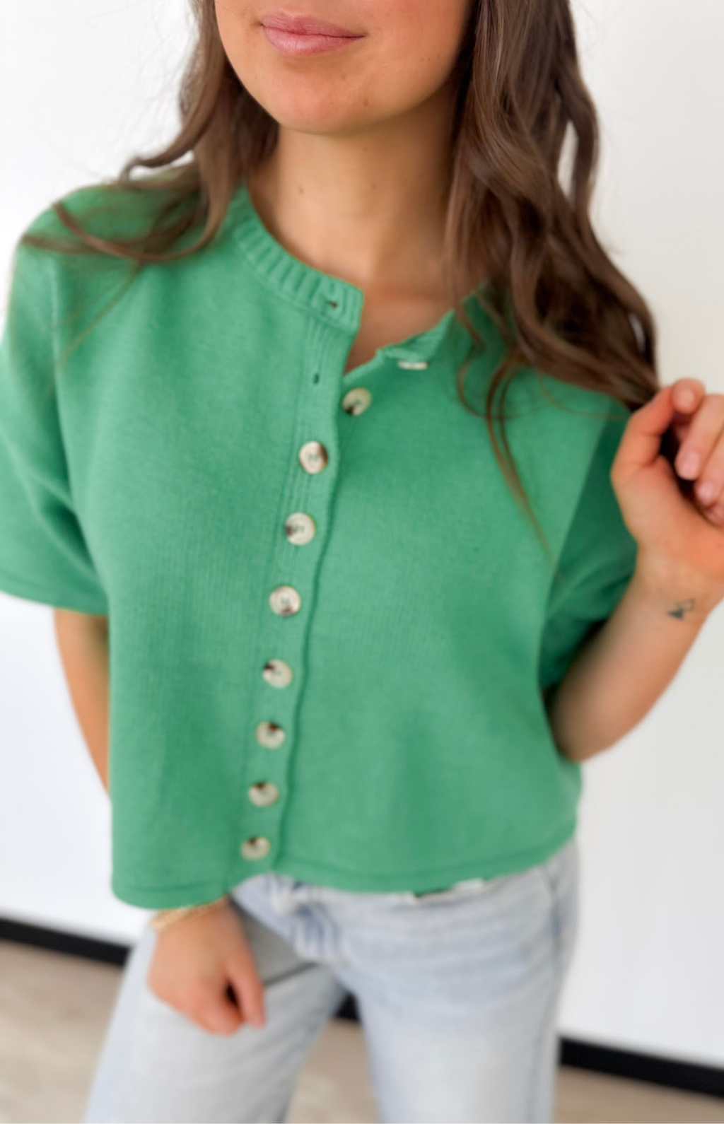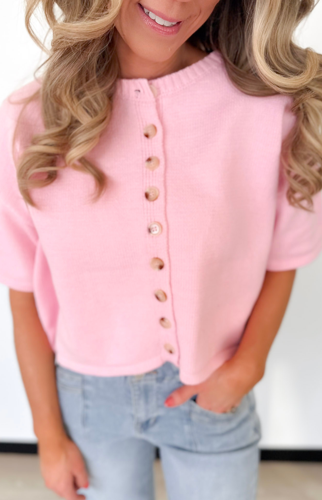 Button Up Short Sleeve Knit Cardigan (2 Colors)