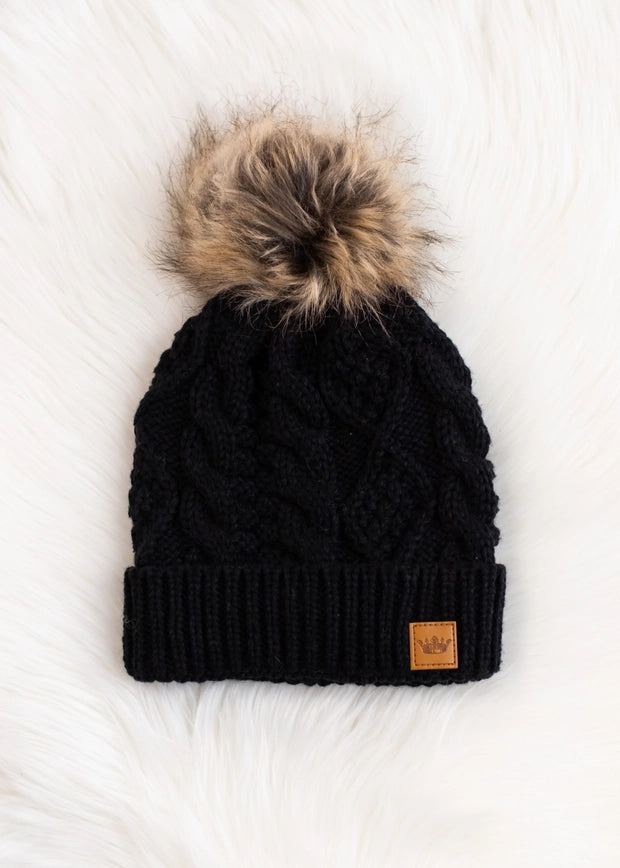 This cable knit hat is the cozy finishing touch every cold-weather outfit needs. The classic cable knit design gives it timeless texture, while the soft pom on top adds a fun, playful touch. Warm, stretchy, and oh-so-comfortable, it fits snugly without feeling tight—perfect for chilly mornings or snowy adventures.